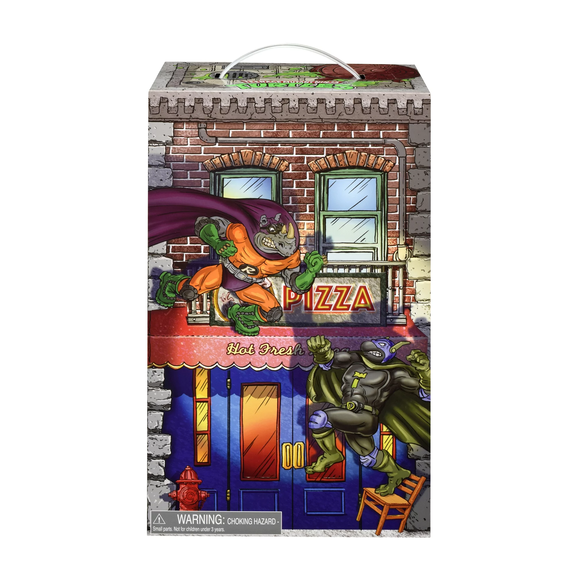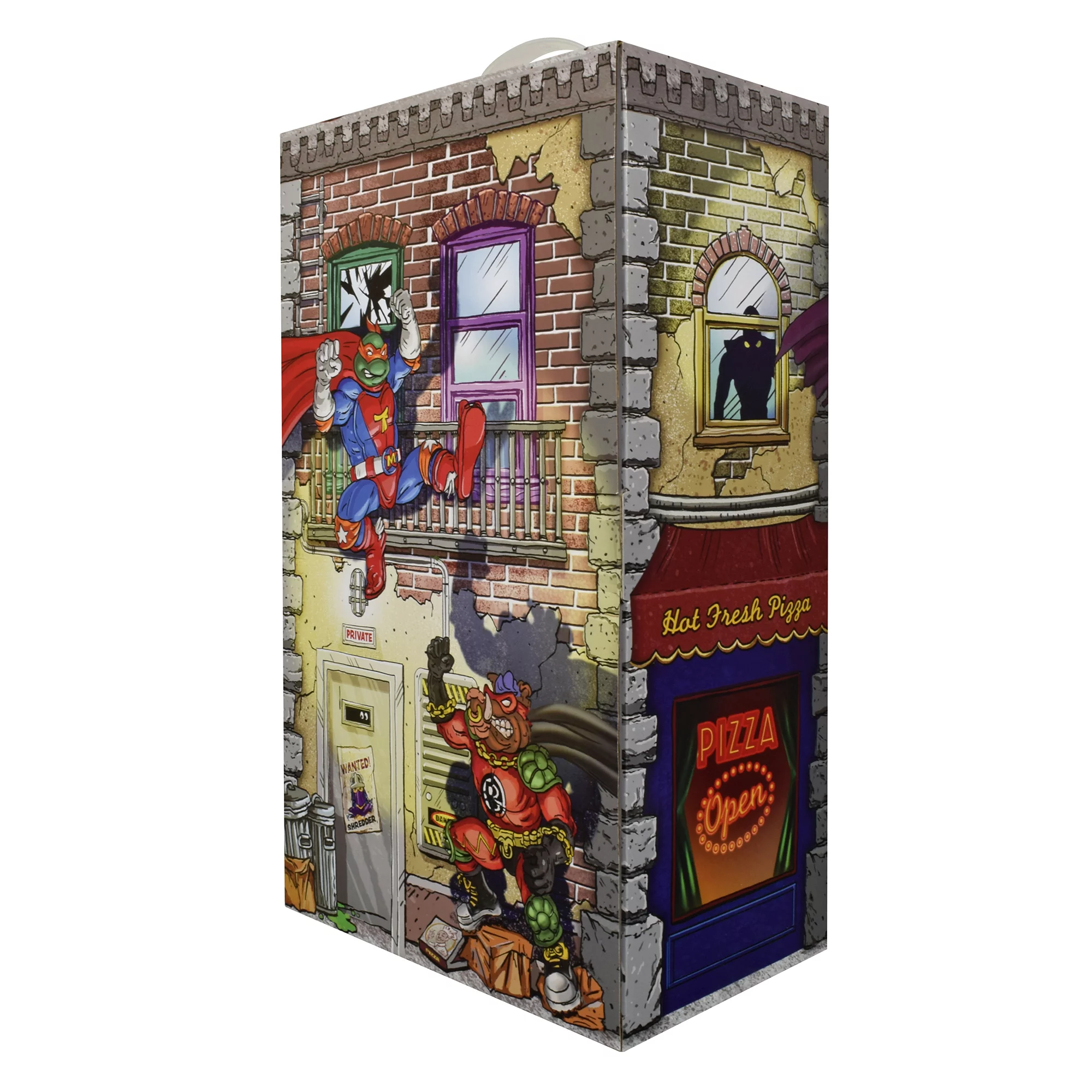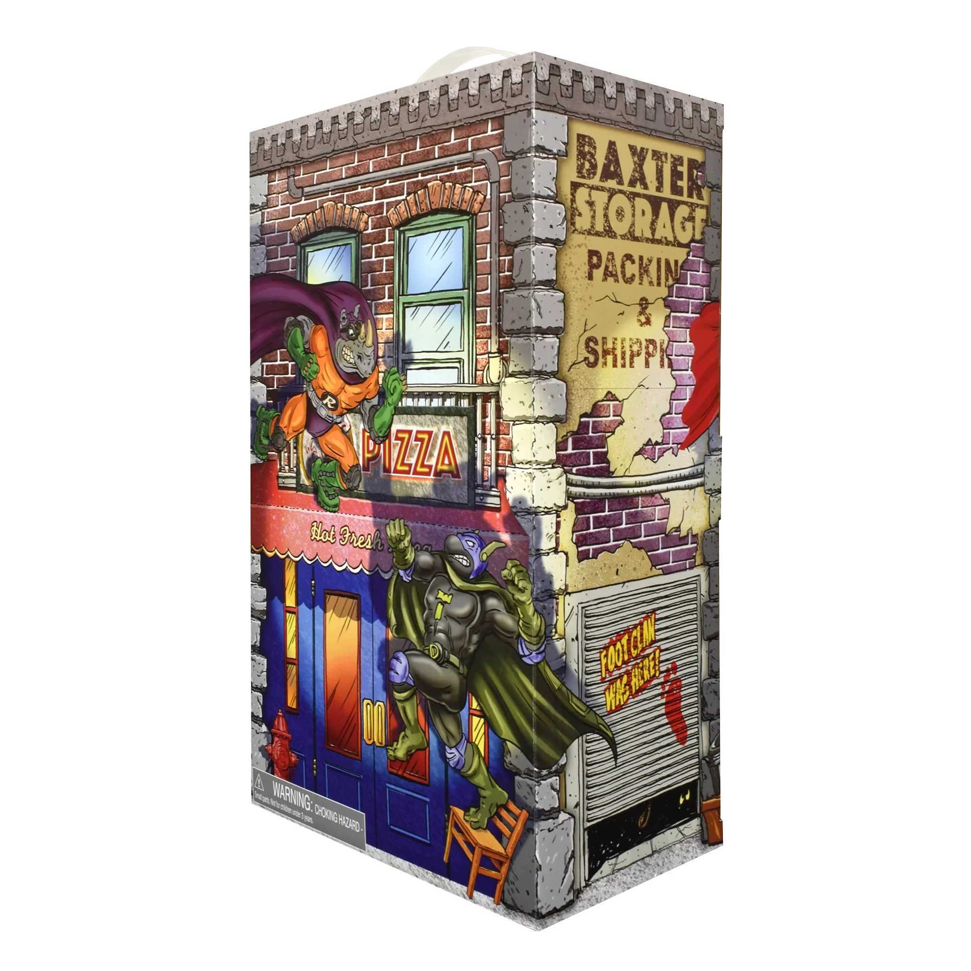 This retro TMNT sewer set comes with Super Mike (The Red, White and Blue Reptilian Ranger), Super Don (The Bad Boy Buster), Mighty Bebop (The Muscle-Bound Mutant Menace) and Rhinoman (The Humongous Horned Half-Wit). Each figure comes in their classic Sewer Heroes branded blister card, and includes an exclusive set of accessories, outfits and a sidekick.