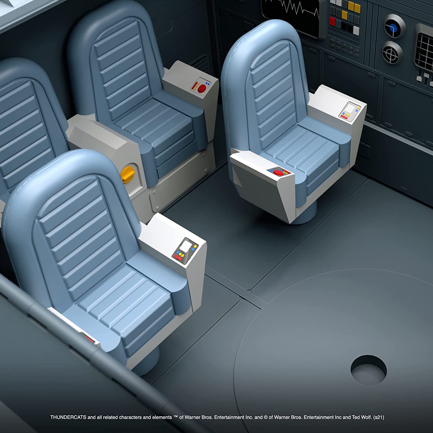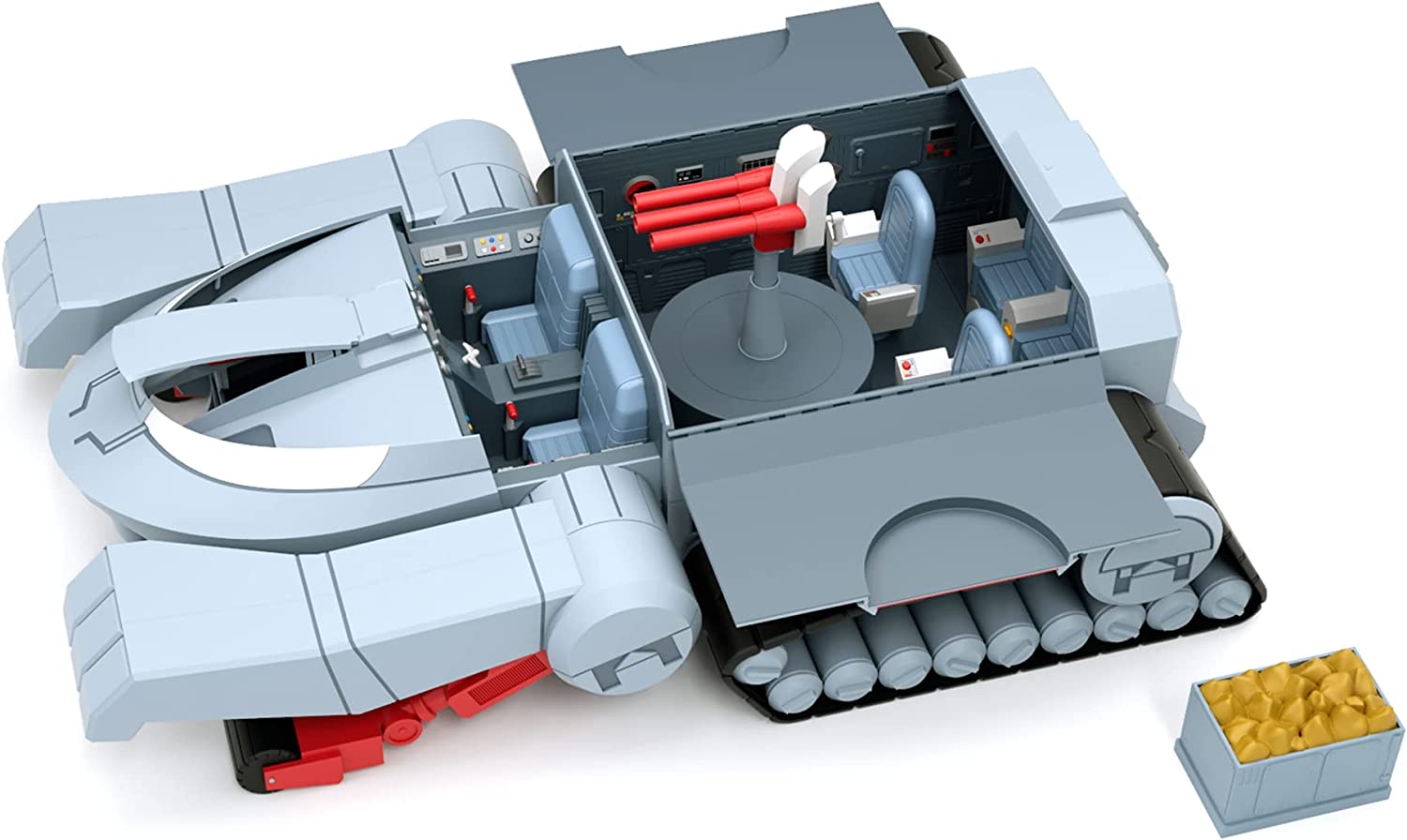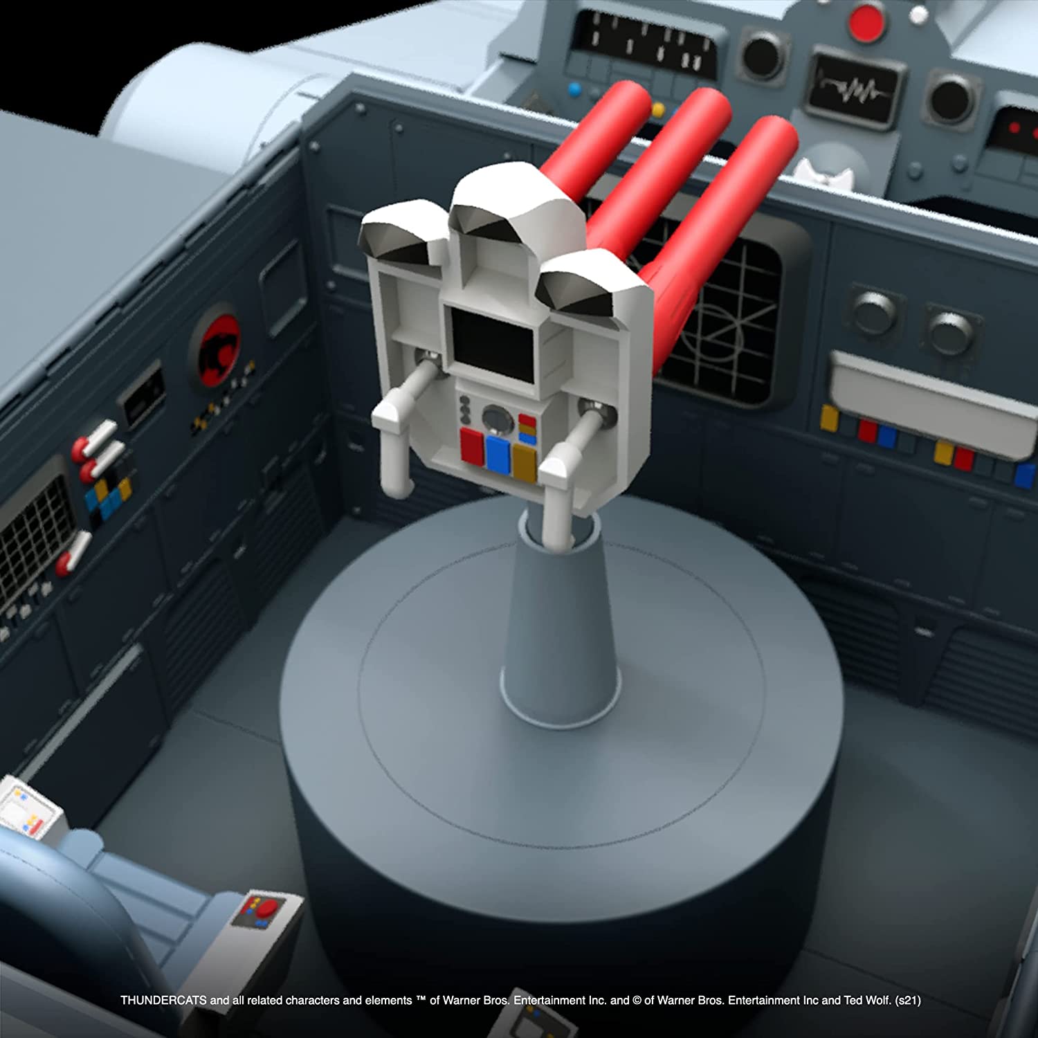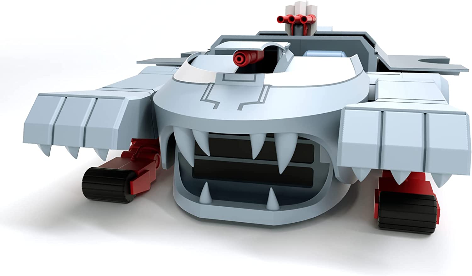 The Ultimates ThunderTank features cartoon deco, a mechanical jaw, rolling wheels, opening cargo bay doors, glow-in-the-dark eyes, and more. At 27-inches long and 17-inches wide, this take is able to carry up to six ThunderCats Ultimates figures and can even fit four of the original ThunderTanks inside.