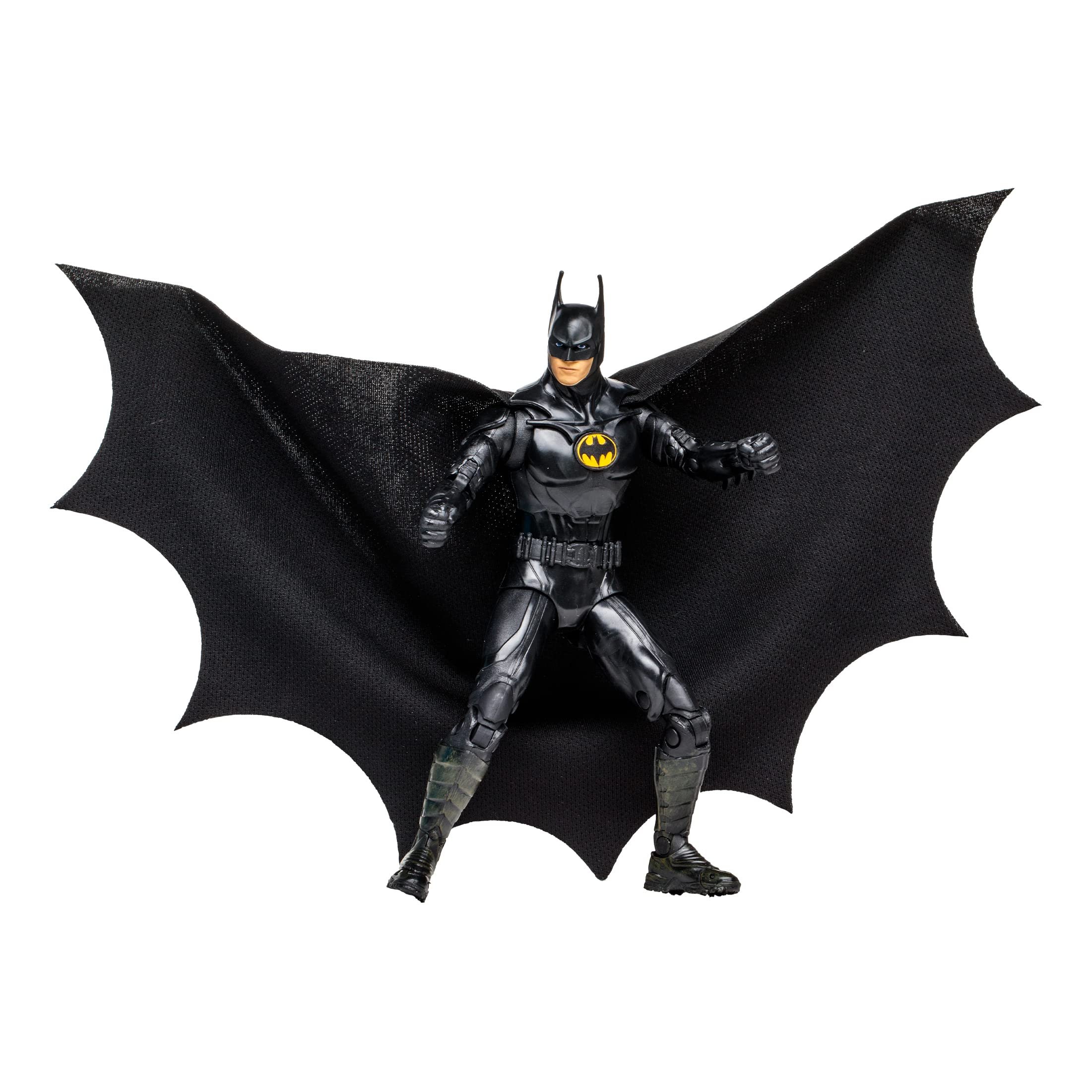 DC The Flash Movie 1989 Michael Keaton Batman Multiverse 7-Inch Scale Action Figure $19.99 DC This figure has ultra articulation with up to 22 moving parts for posing and play. It includes two alternate hands, one Batarang, one grappling hook, a cloth cape, and a display base. A collectible card with character artwork on the front and a character bio on the back is also included. This 1989 version of the Caped Crusader comes packaged in a window box. [Entertainment Earth]