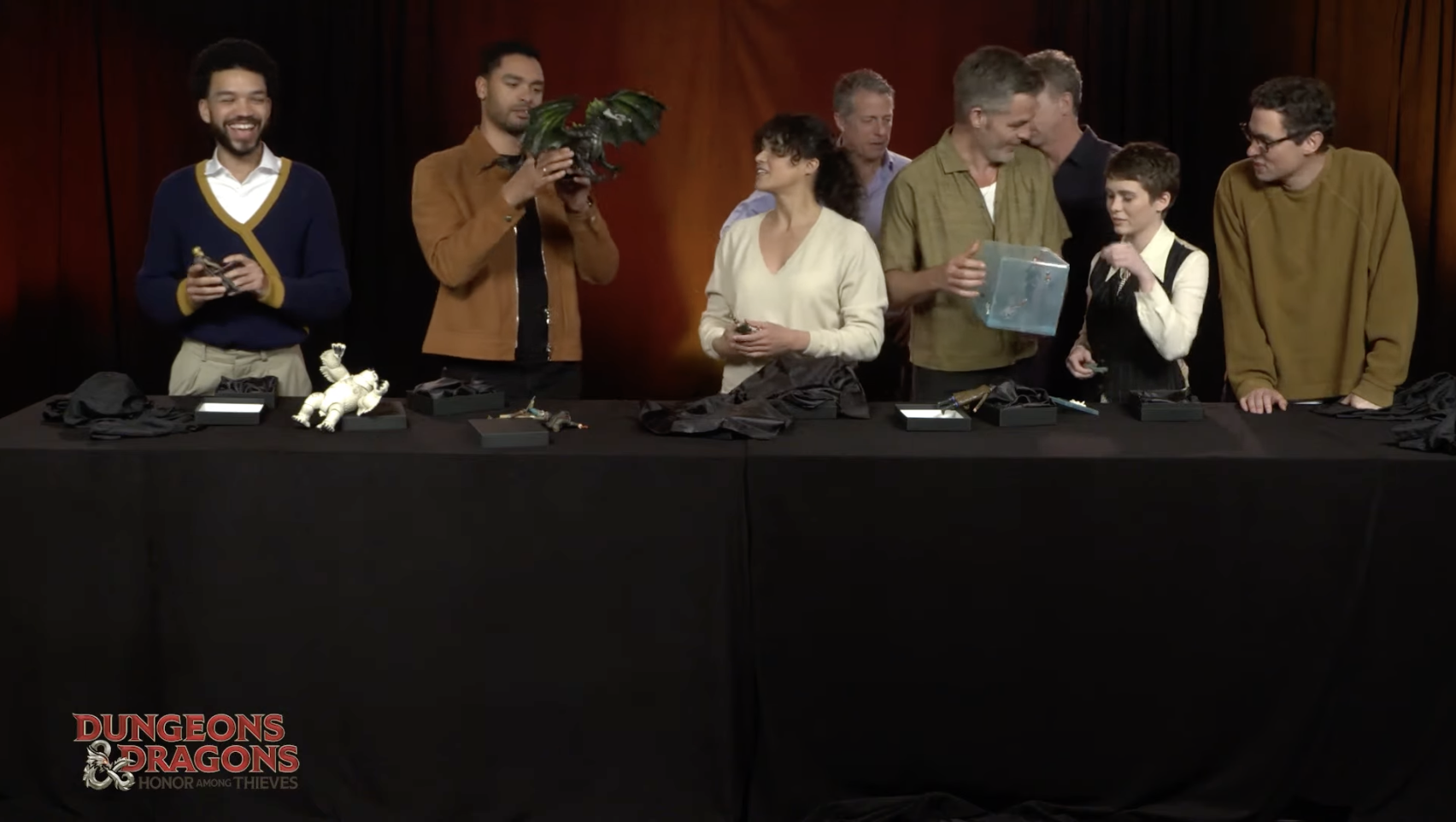 No pre-order information given for Tiefling Doric or Xenk at this time. Stay tuned. There was some charming footage of the movie cast unboxing figures of themselves.