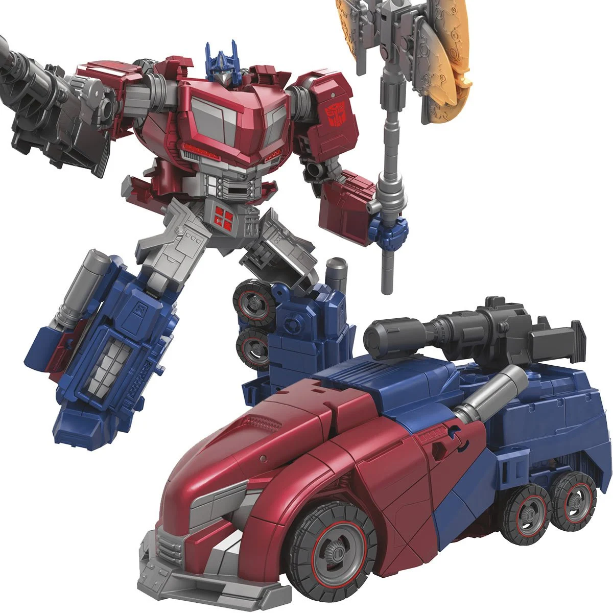 Transformers Studio Series Voyager 03 Gamer Edition War for Cybertron Optimus Prime $34.99. Includes a blaster and an awesome axe accessory based on his appearance in the Transformers: War for Cybertron video game. Each package comes with a video game scene backdrop that can be removed to display the figure on shelf. Fans can use the backdrop and pose their figures in the scene with their own style. For ages 8 and up. [Entertainment Earth, Amazon]