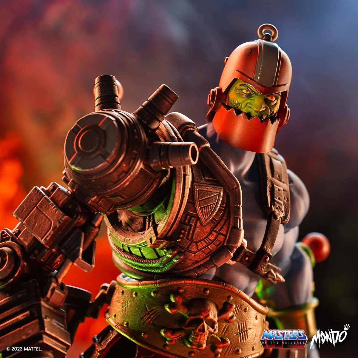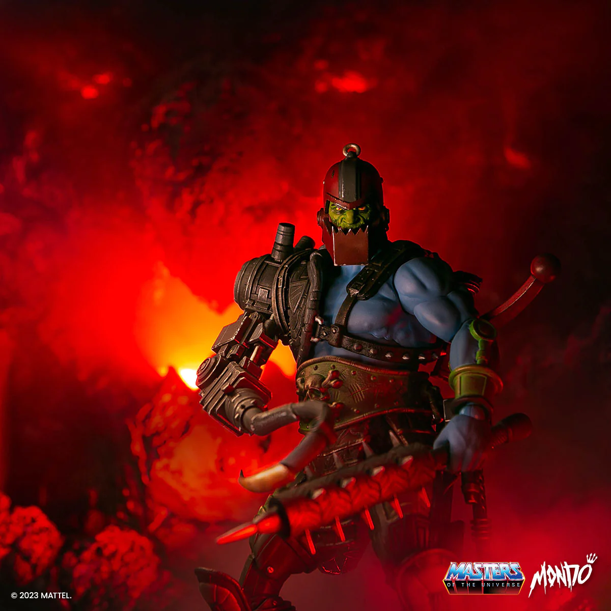 Mondo’s announced new information about their hotly anticipated MOTU Trap Jaw 1/6 Scale Deluxe Timed Edition. Presales will open on Tuesday, March 7 at 1:00 p.m. Eastern and close on Thursday, March 9 at 12:59 p.m. Eastern. [Non-East Coasters, you can do the time-zone conversion here.] The figure is listed at $235 and is expected to ship in September 2023. Preorders are limited to 3 figures per person, household, etc. Trap Jaw is approximately 12-inches tall.