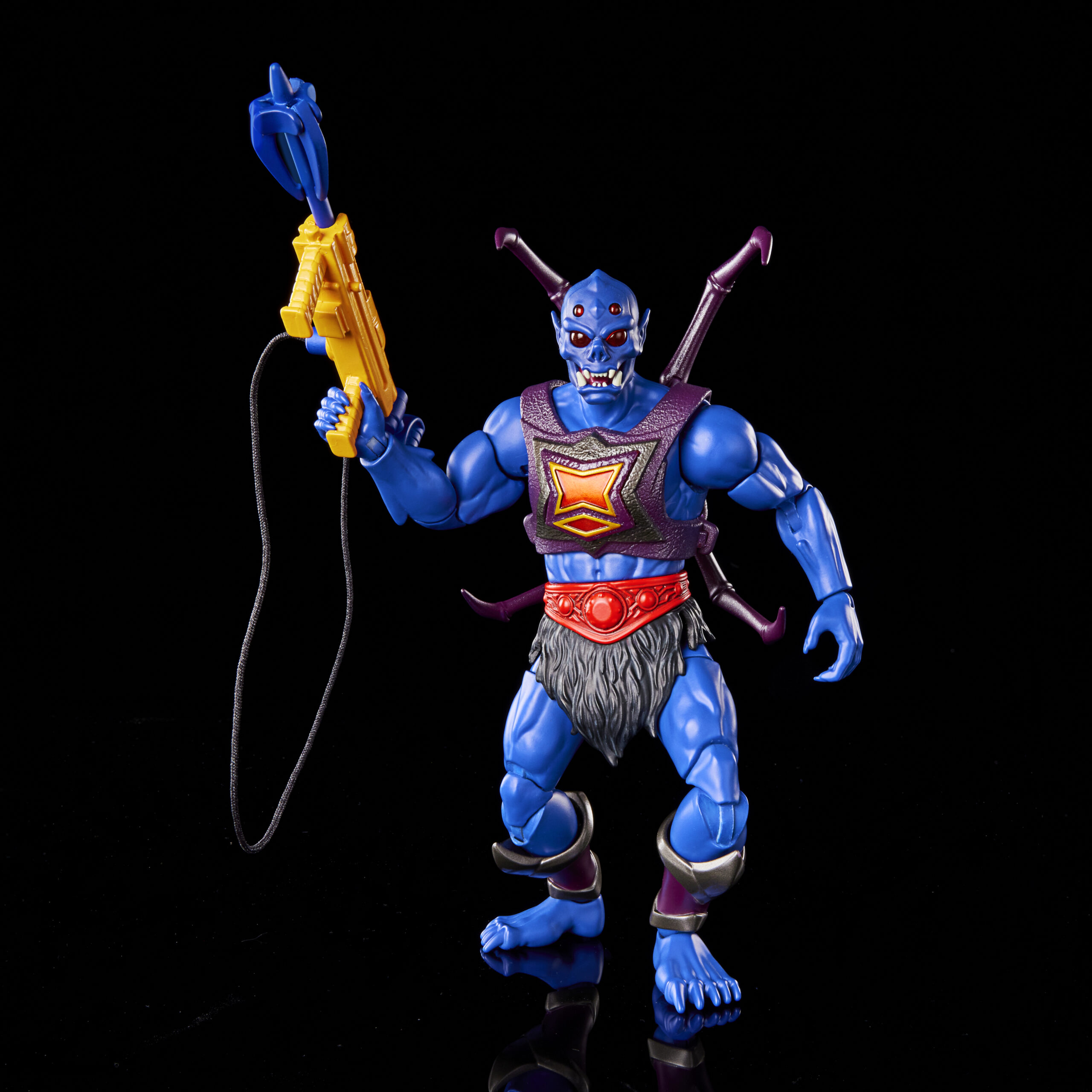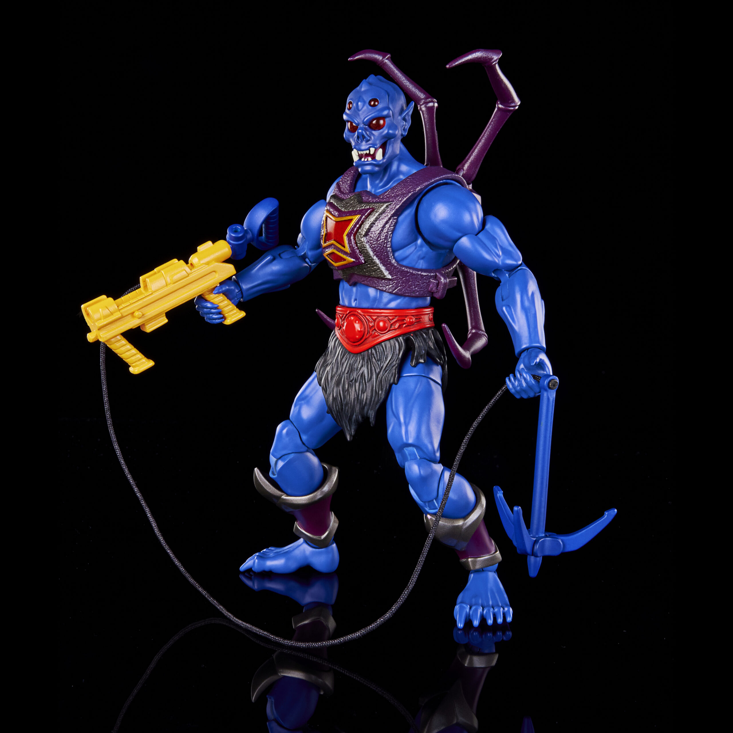 I LOVE this figure. Those enlarged spider eyes with that pearlescent paint! The head sculpt is fantastic. The texture on his armor looks incredible. I love how they incorporated his grappling hook feature into his orange gun. Through and through, this New Eternia Webstor is a home run.