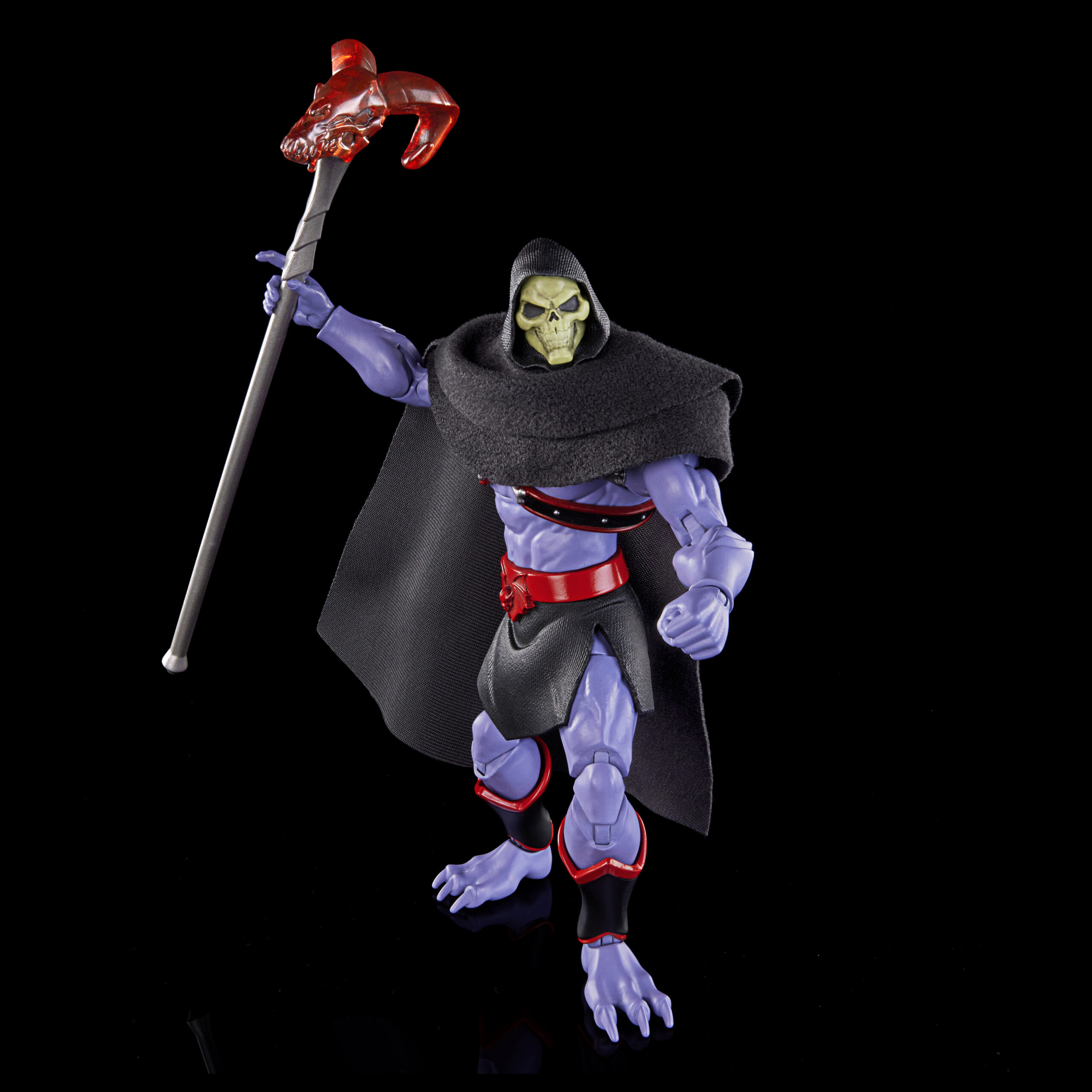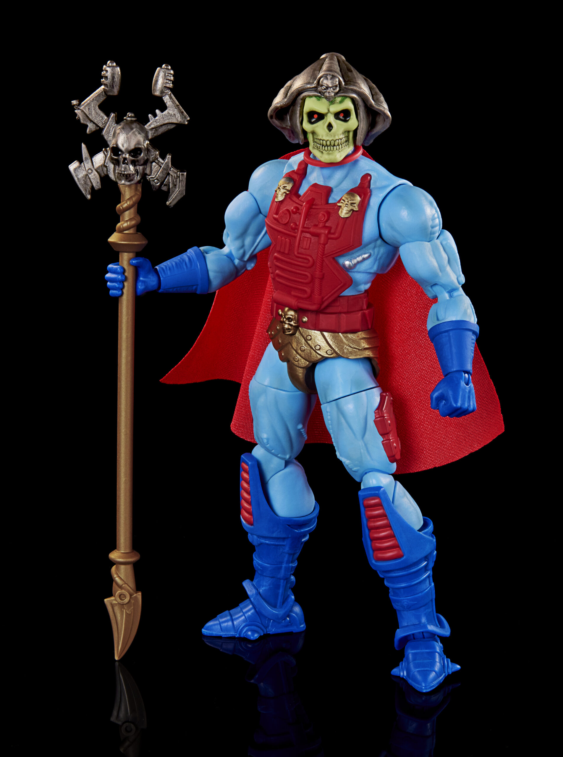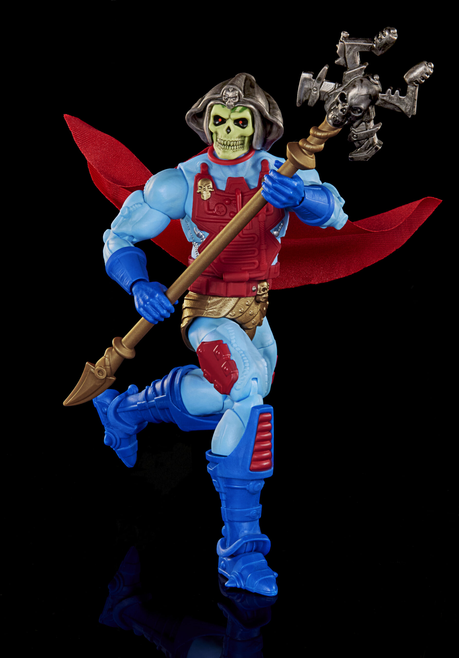 When I first saw this figure at Spielwarenmesse, I thought he was a Masterverse Laser Light Skeletor with his red highlights and the translucent red skull on top of his havoc staff. But this is actually his Horde look from the upcoming MOTU Revolution series hitting Netflix. I realllllllly like this look, and the improved headsculpt looks absolutely fantastic!