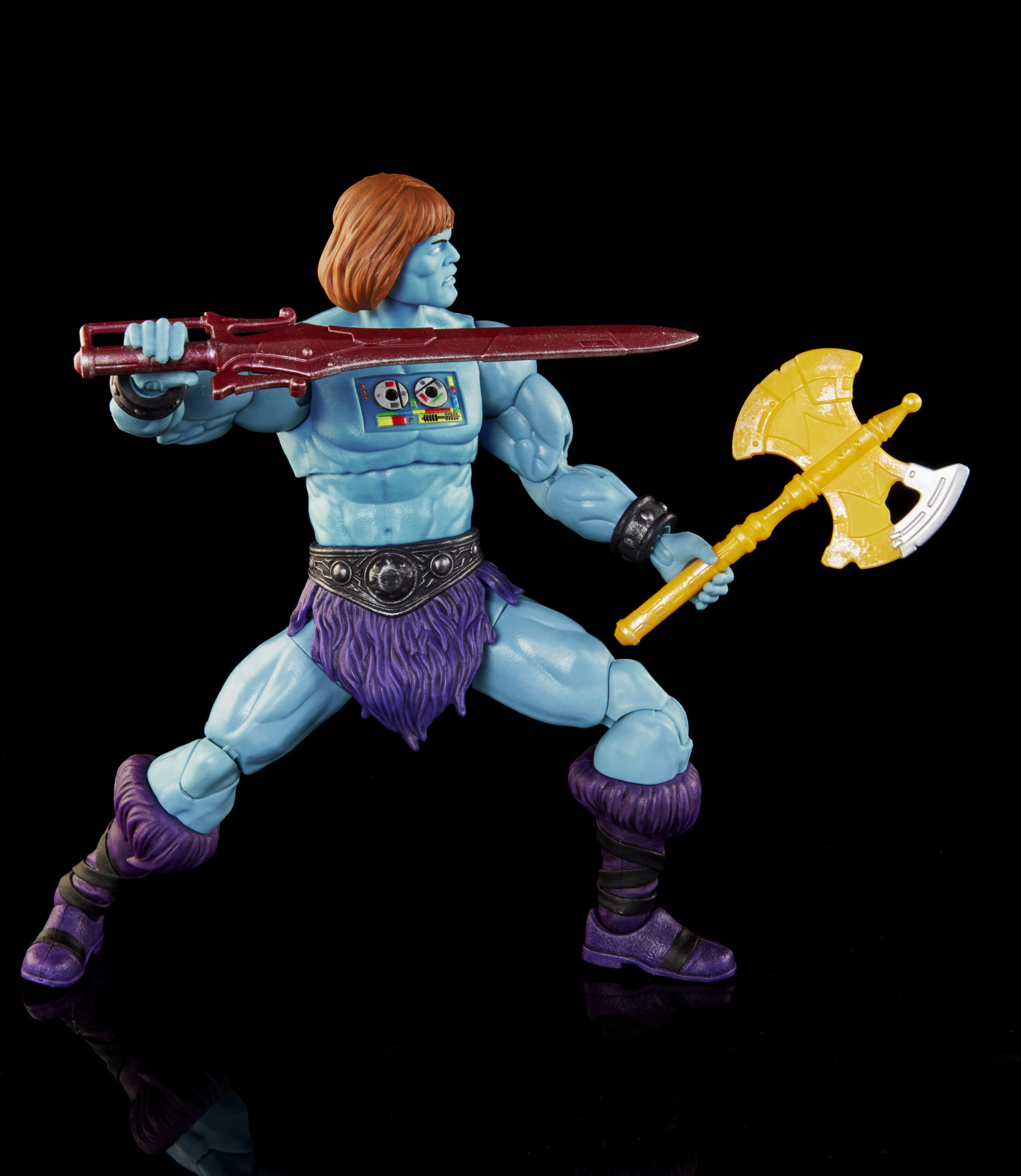 I also saw this Deluxe New Eternia figure at Spielwarenmesse and he slightly underwhelmed in person. The top half of the figure sans his additional armor seems small, especially when compared to the Classics version. Ram-Man’s size has varied through different media, so it’s hard to strike that balance, but overall it looks like a great figure (love that his legs have a rubber overlay to hide his knee joints). Overall, however, I think the Classics version beats this one out.