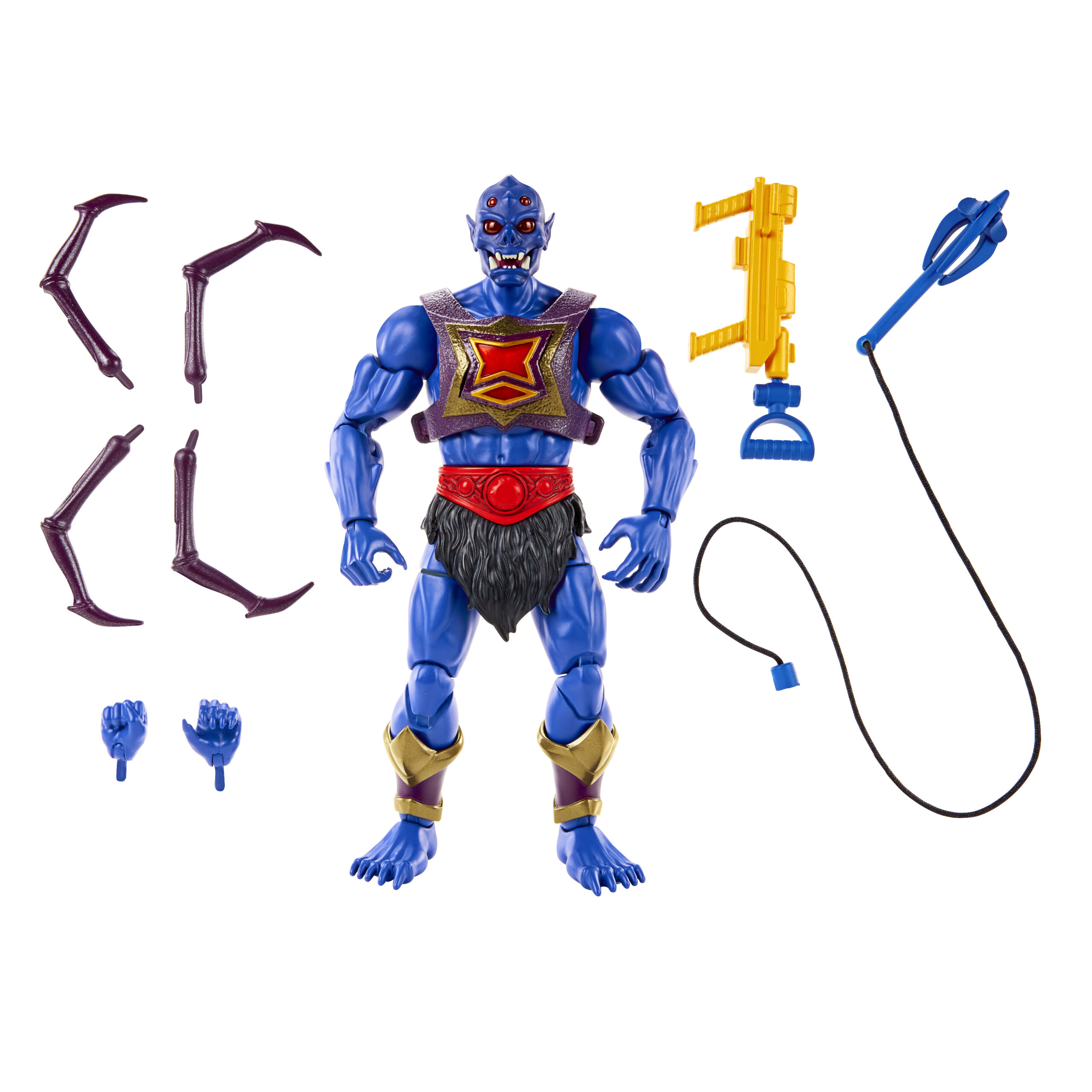 This Clawful is a stunner. It’s clearly a “New Eternia” entry giving us multiple looks from different versions of Clawful. Clawful is another of those original MOTU designs that can be silly, but this Clawful is big and menacing. His big articulated claw looks great, as does his armor.