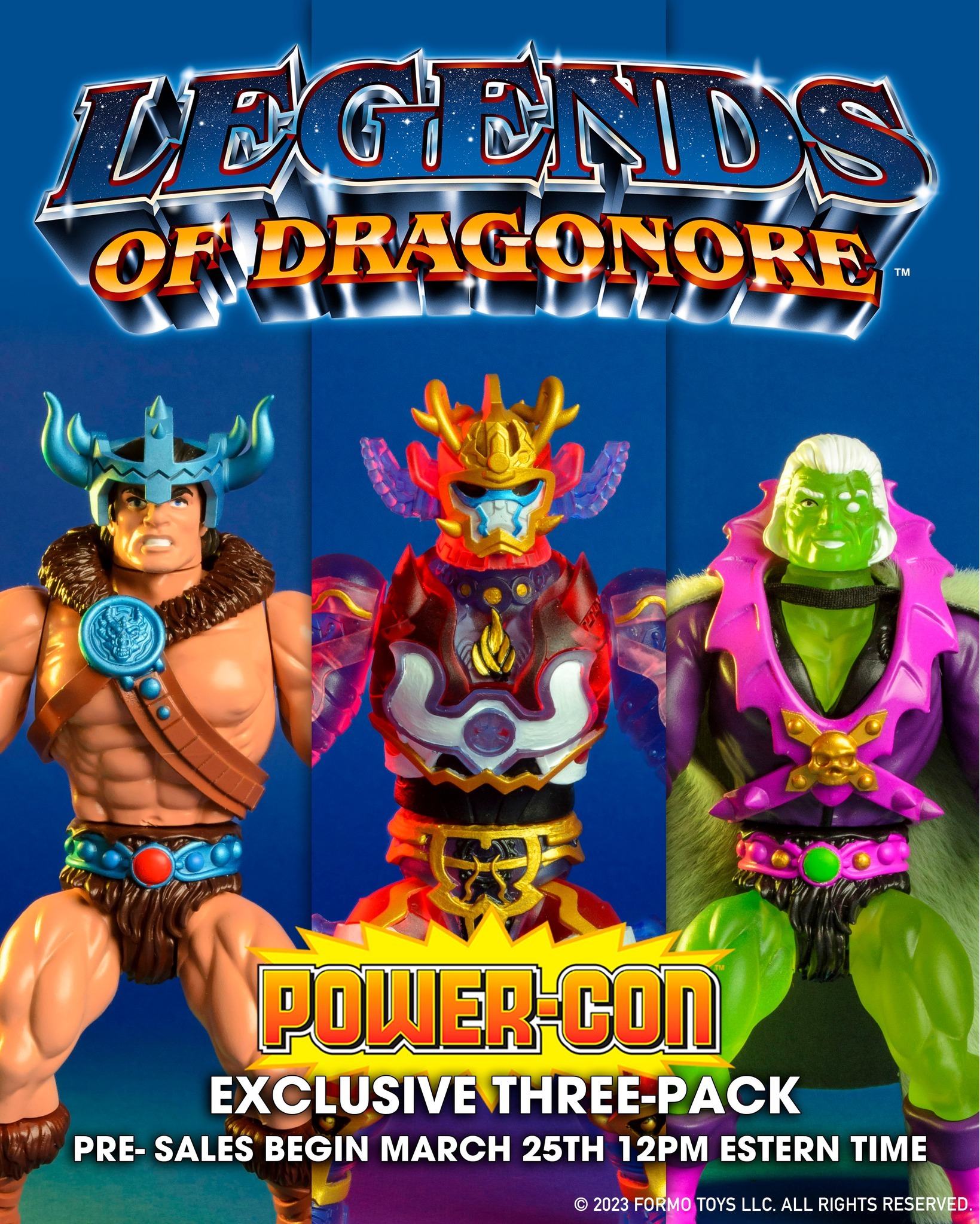 Power-Con Exclusives pre-sales takes place this Saturday, March 25 at 12 p.m. ET and will include a Legends of Dragonore exclusive three-pack from Formo Toys.