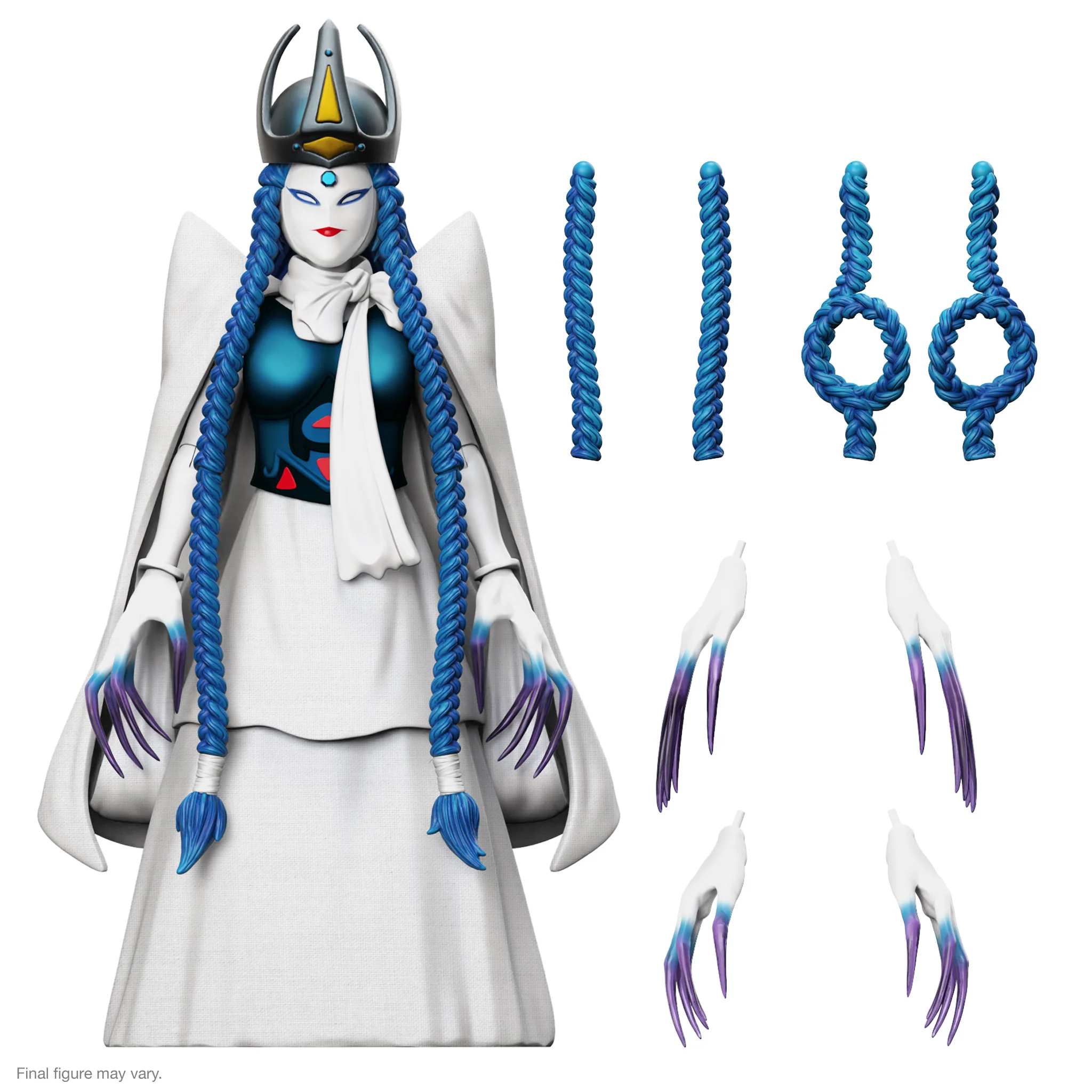 This 7-inch scale highly articulated Madame Woe ULTIMATES! figure features six interchangeable hands, a soft goods dress, and six swappable hair braids. Ages 14 and up.