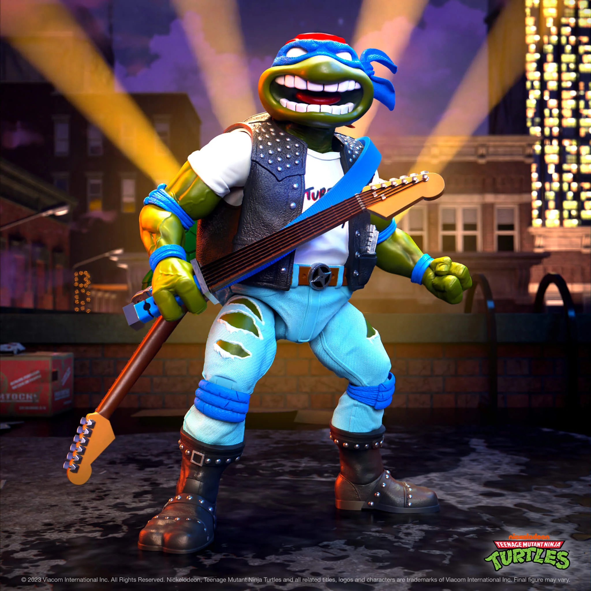 Classic Rocker Leo $55. Classic Rocker Leo is here to help you rock some righteous tunes AND any bad guys that get in the way! This 7″ scale Teenage Mutant Ninja Turtles ULTIMATES! Classic Rocker Leo features multiple interchangeable heads, hands, and accessories, including a guitar with removable necks that double as swords. Rockin’ the made-to-order ULTIMATES! Classic Rocker Leo figure is a sure-fire way to take your collection to the top of the charts! [Entertainment Earth]