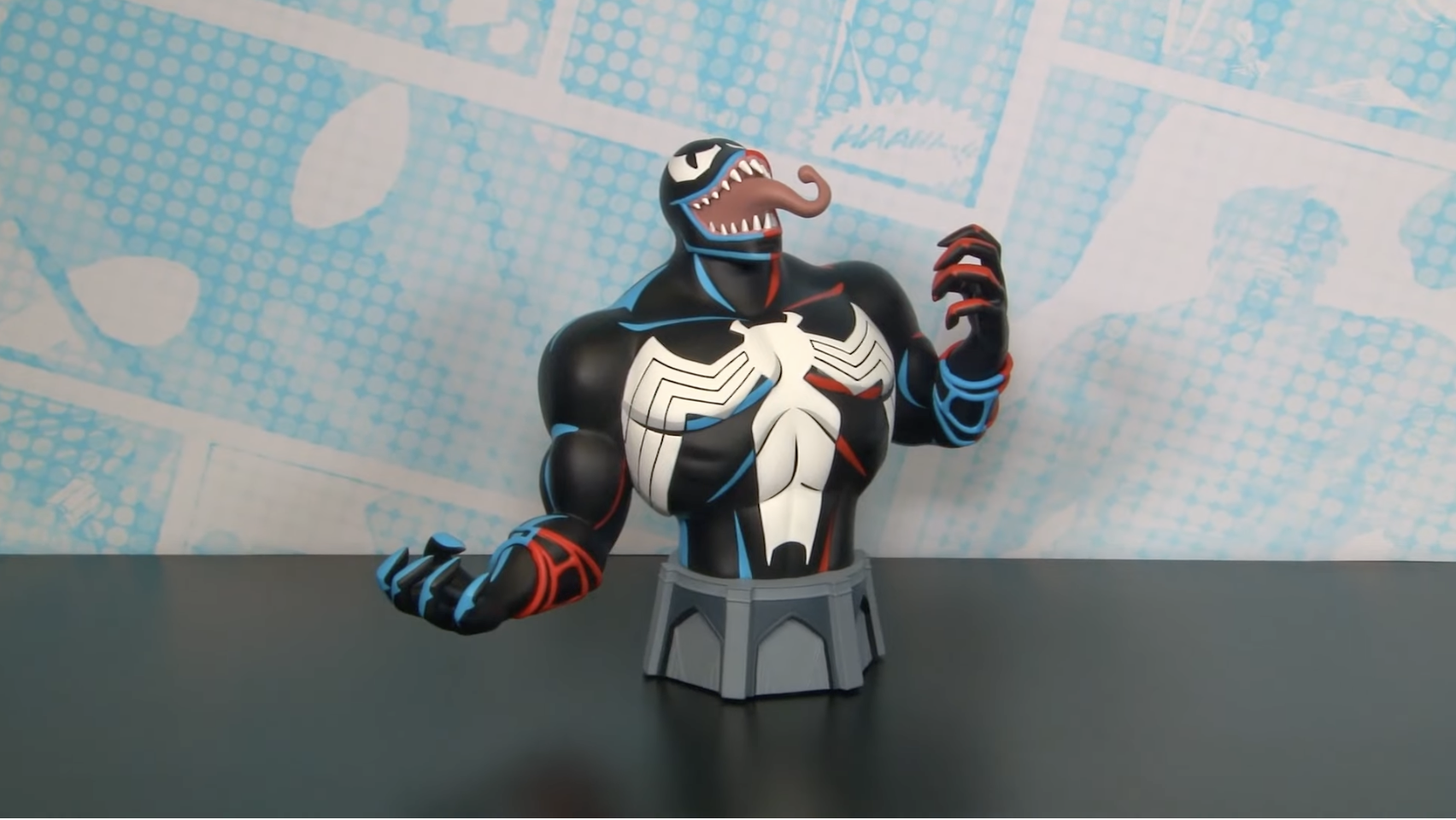 - Venom 1/7 Scale Mini-Bust: Animated-style look with NYC themed base; $130; Will be out in Summer 2023.