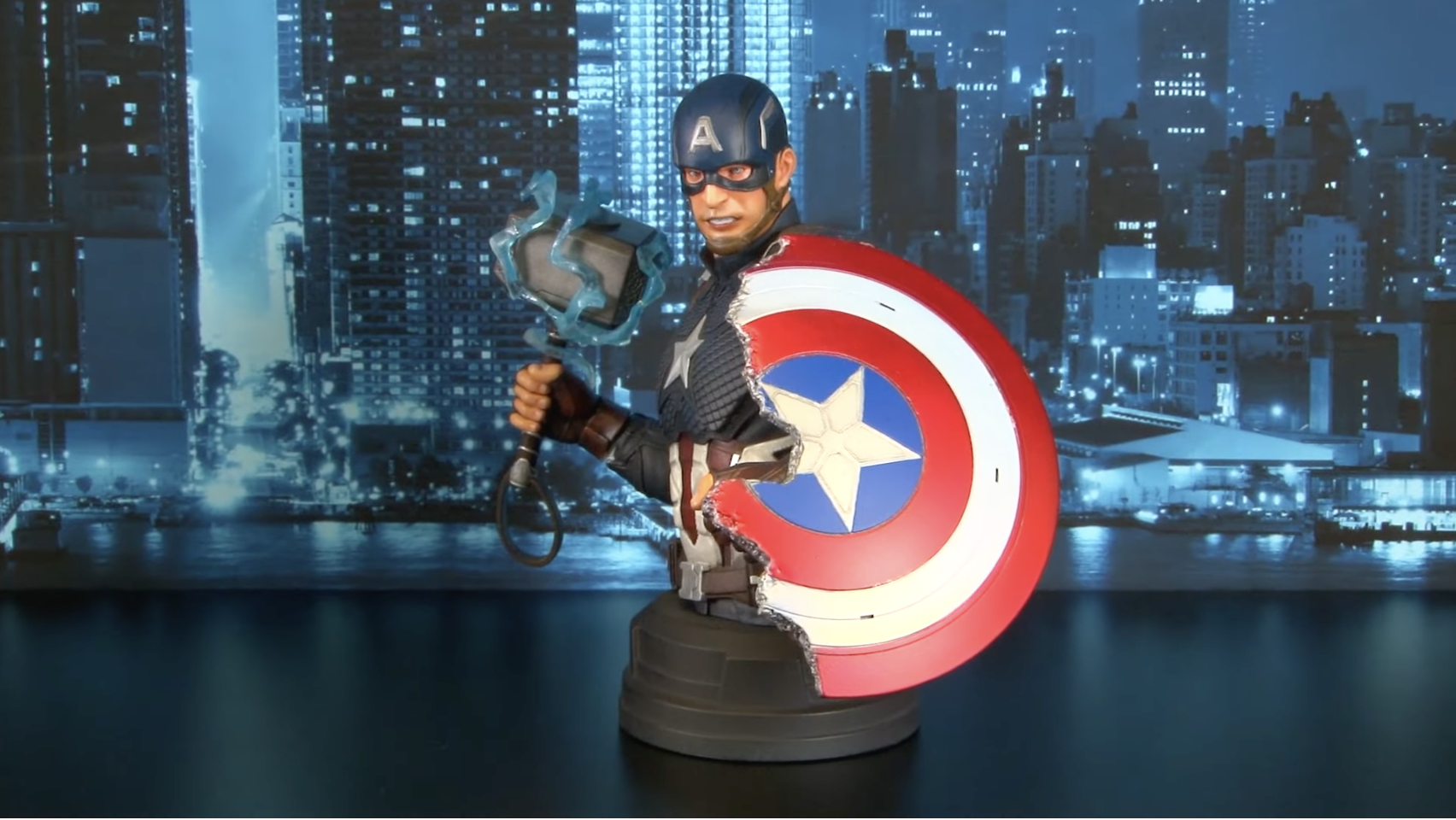 - Endgame Captain America 1/6 Scale Mini-Bust: Features the broken shield and Thor’s hammer; $120; Will be out Summer 2023.