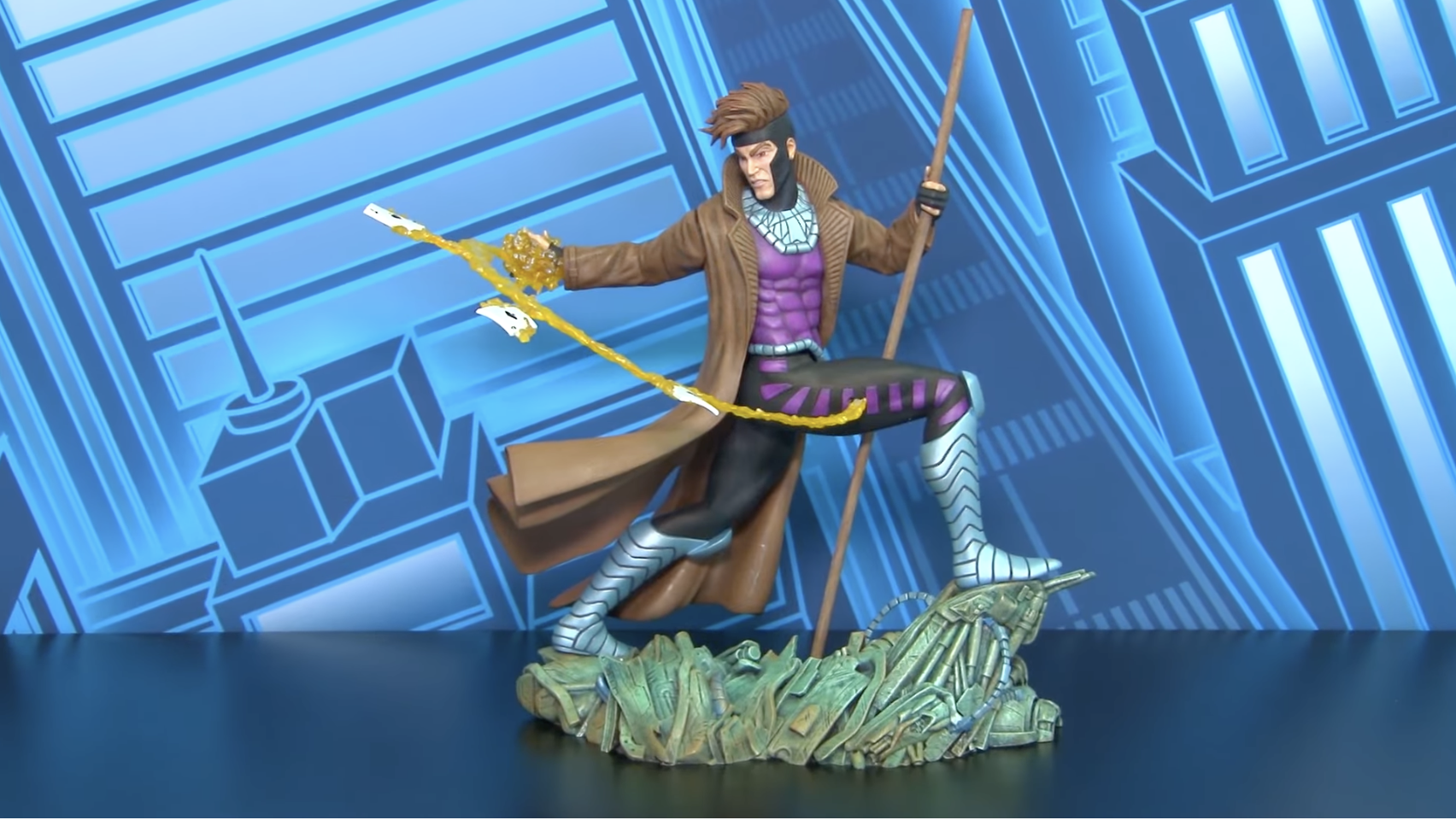 - 90s X-Men Gambit PVC Diorama: Features clear plasmic energy and throwing cards; $59.99; Will be out Fall 2023