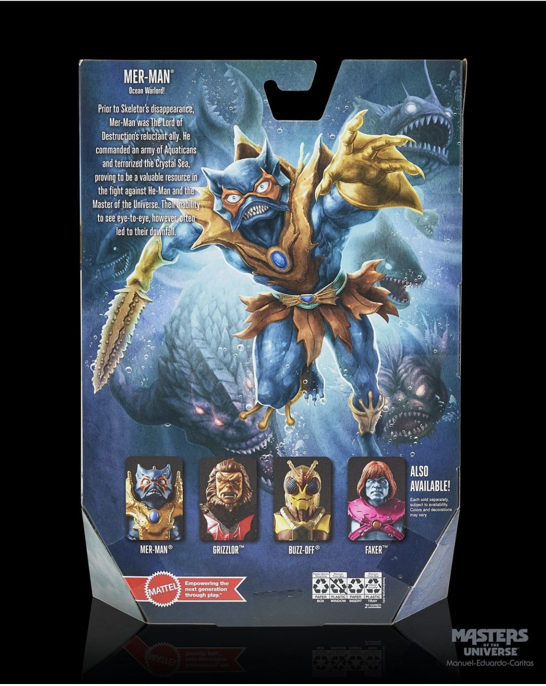 Last weekend, Mattel Package Designer Roy Juarez gave us a first look on Instagram at the packaging and artwork that he and his team did for MOTU’s Masterverse Revelation Mer-Man. Juarez just posted an update with a full look at the cardback artwork for Mer-Man, explaining the original post had a glitch. The artwork was painted by Joseph Zacate.