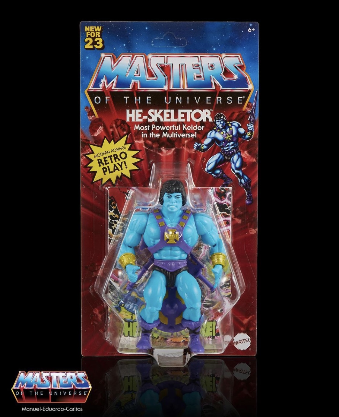 He-Skeletor comes from the 2020 Masters of the Multiverse comic, which introduced the concept of multiple different Eternias. On Anti-Eternia, He-Man is evil, and Prince Keldor, who never became Skeletor, is recruited by different multi-versions of He-Man to save every Eternia in the Multiverse by claiming the Power of Grayskull and becoming He-Skeletor.