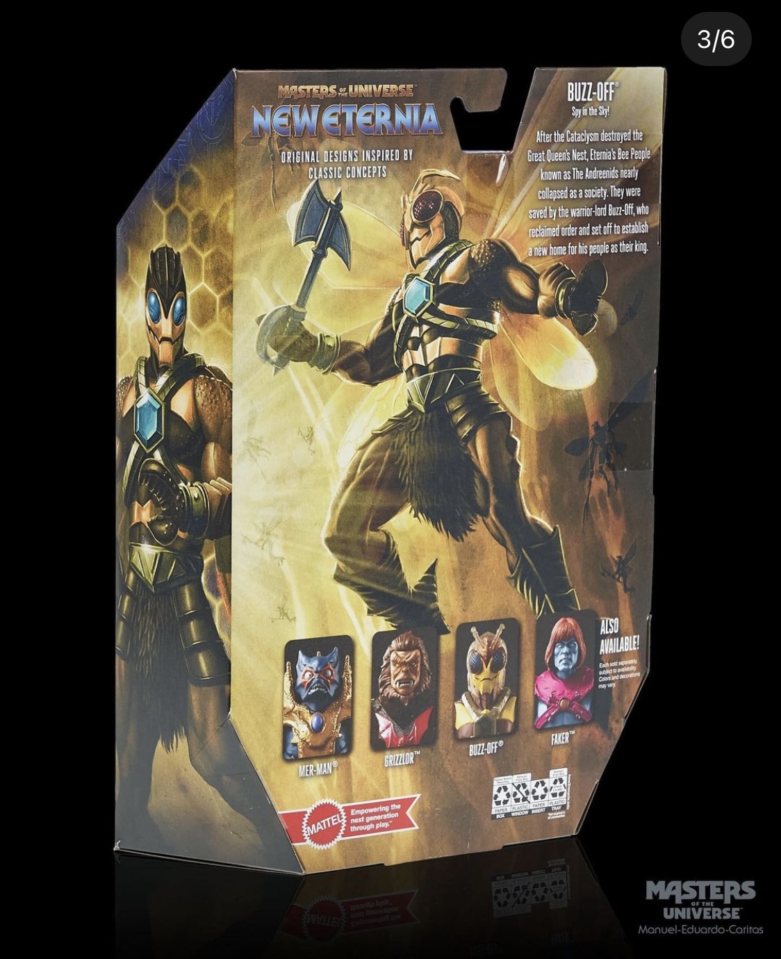 Mattel Package Designer Roy Juarez gave us a first look on Instagram at the packaging and artwork that he and his team did for MOTU’s Mer-Man, Grizzlor, & Buzz-off: