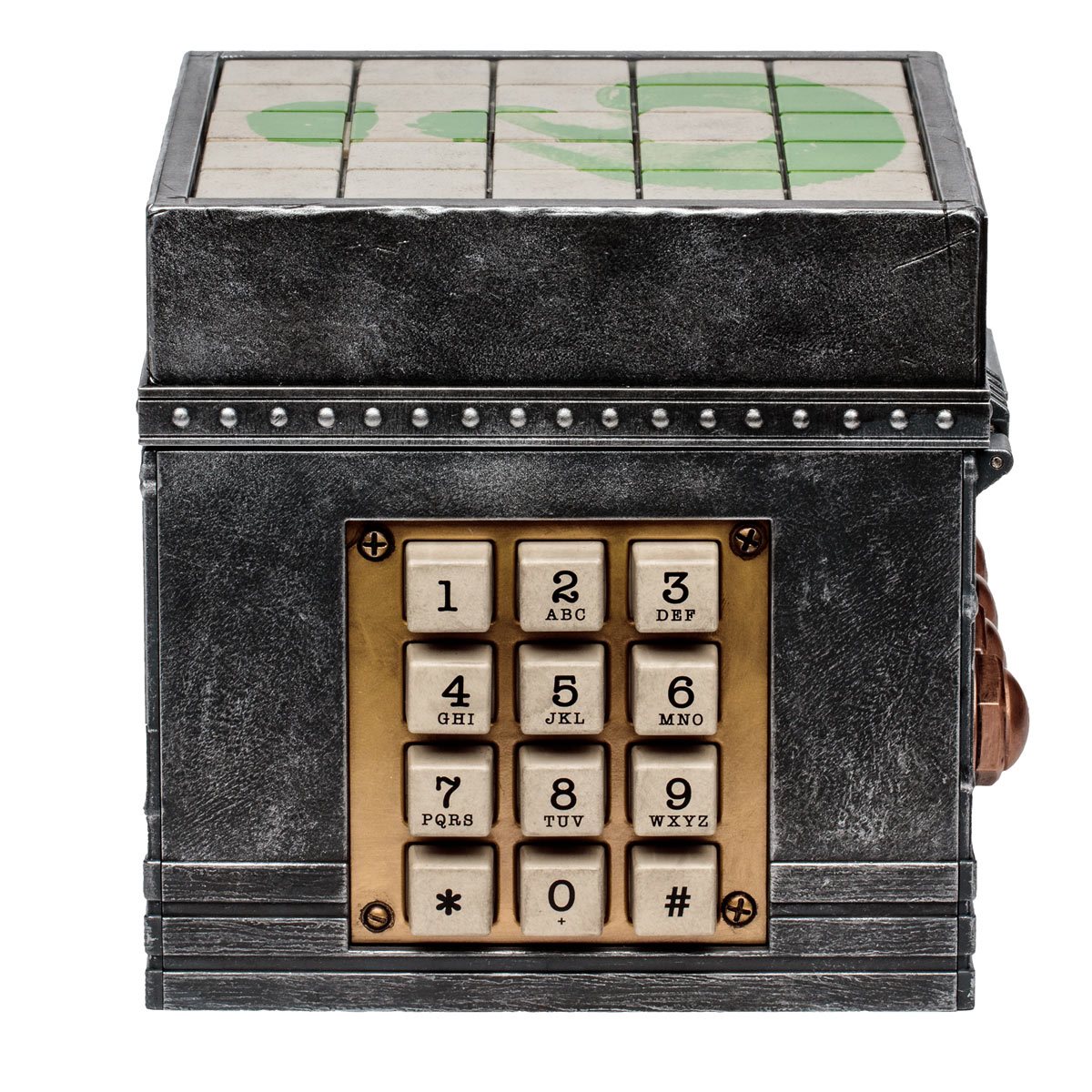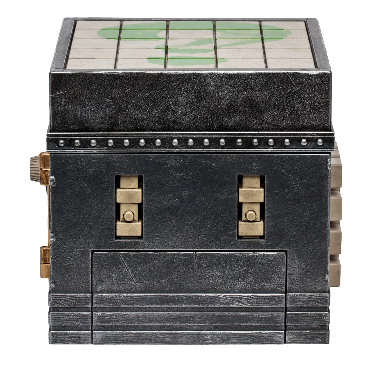 The puzzle box has four riddles that you have to solve in order to unlock the prize hidden within: A 1:1 scale metal Batarang. It measures 5 x 5 x 5-inches and is designed with distressed deco and faux metal finishing. It’s recommended for ages 14 and up.