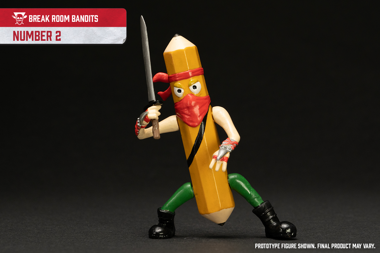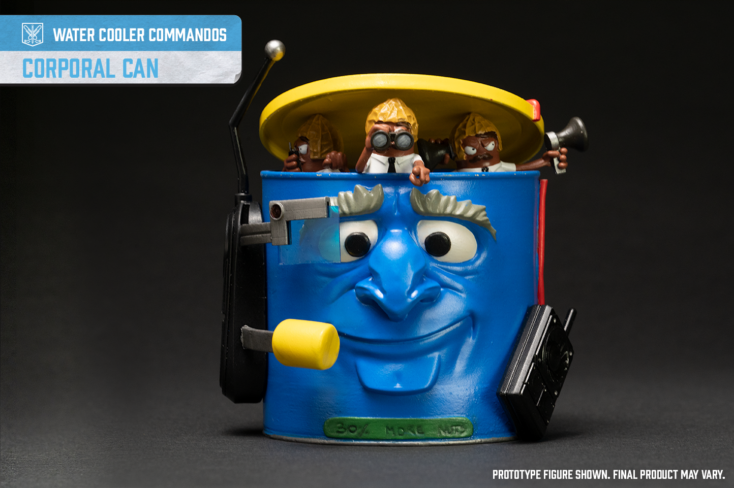 9 to 5 Warriors is a unique take on a new action figure line. 9 to 5 Warriors is a toy line created by Brandon Braswell and sculpted by Scott Hensey. Drawing inspiration from Saturday morning cartoons of the 90’s, these figures pay homage to the Food Fighters figures of old in their design, but this time bringing the fight to the office. Two factions vie for office room supremacy; the Water Cooler Commandos and the Break Room Bandits. There story has been laid out through a comic book and trading cards.