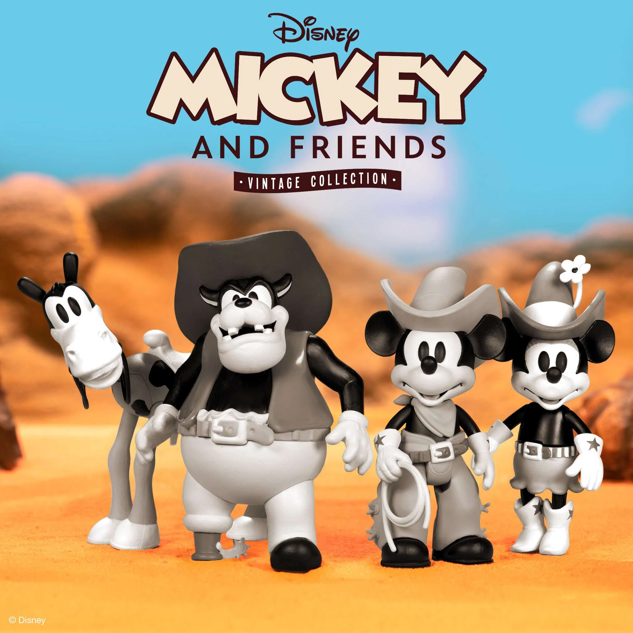 Super 7 just released Wave 3 of their Disney Mickey and Friends Vintage Collection ReAction Figures. This new wave is inspired by classic 1930s animation and features Cowboy Mickey, Cowgirl Minnie, Peg-Leg Pete, and Horace Horsecollar.
