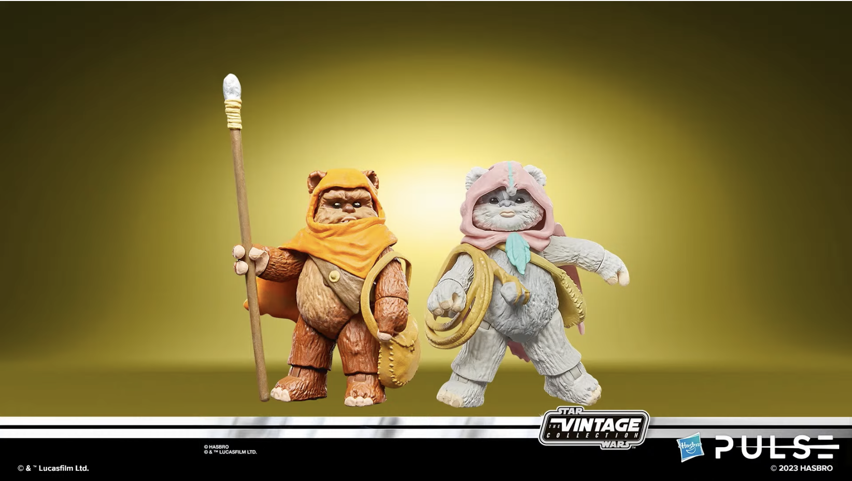 Star Wars The Vintage Collection Ewoks Animated 2-pack with Wicket and Kneesa: Inspired by the 1985 Ewoks cartoon series. Has Kenner-inspired storybook illustration card backs like the original toy line did. Wicket comes with spear, Kneesa comes with rock bandolier, both have messenger bags. Comes with two new collector coins. Releasing Spring 2024.