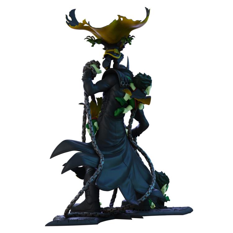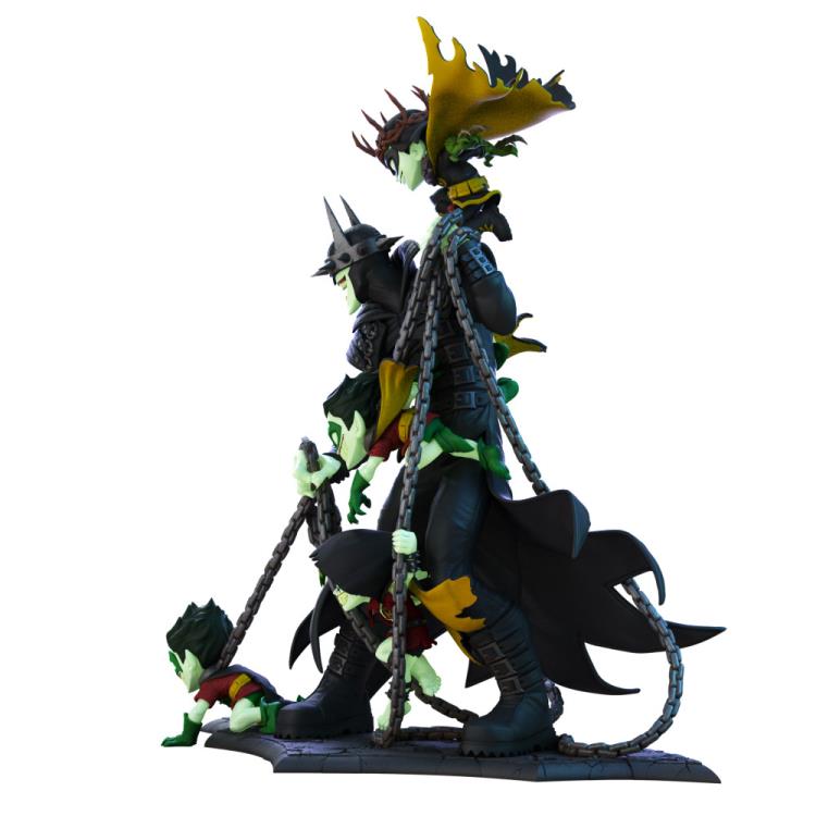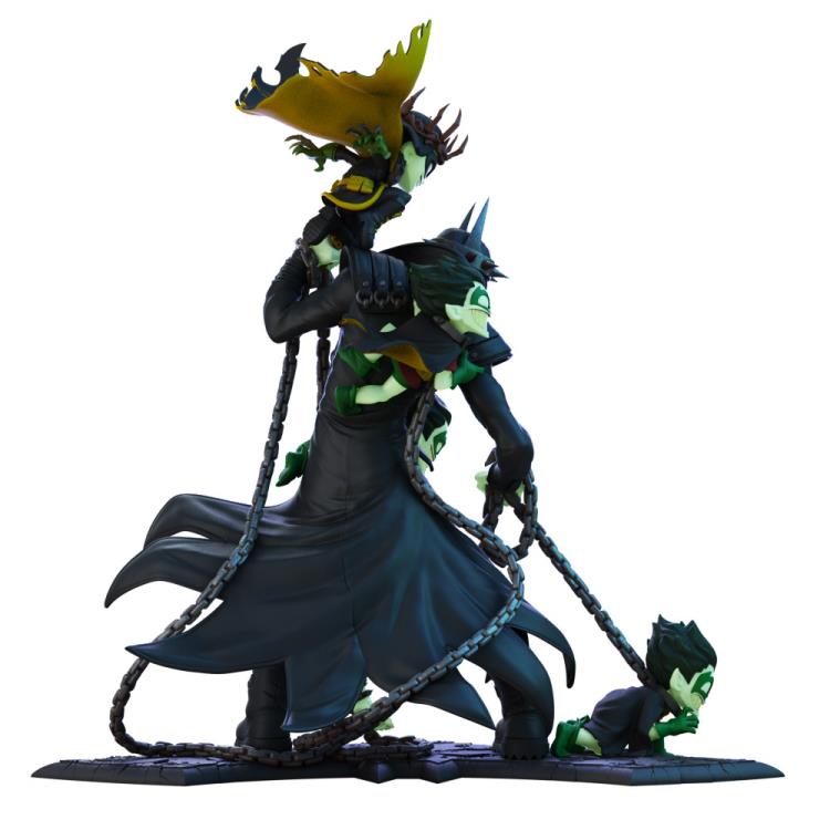 This 15-inch Q-Master statute features Batman in his evil alter-ego persona surrounded by minions of wretched Robins being held in chains by the evil Dark Knight. The really neat detail about this statute is the glow-in-the-dark accents. It’s recommended for ages 16 and up.