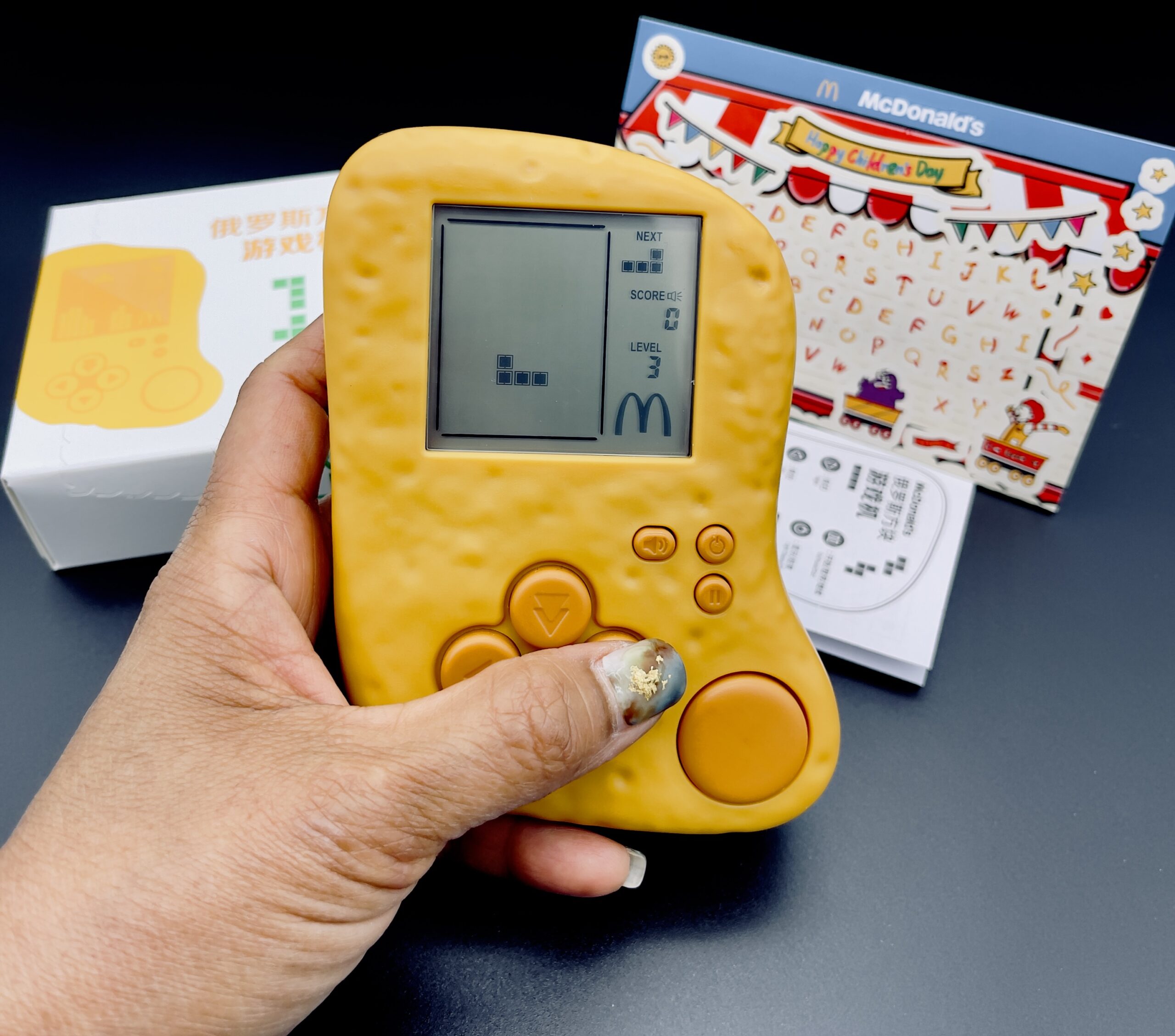 In honor of Chicken McNuggets’ 40th anniversary, McDonald’s in China are currently offering a custom handheld Chicken McNugget game device that fans can play Tetris on.