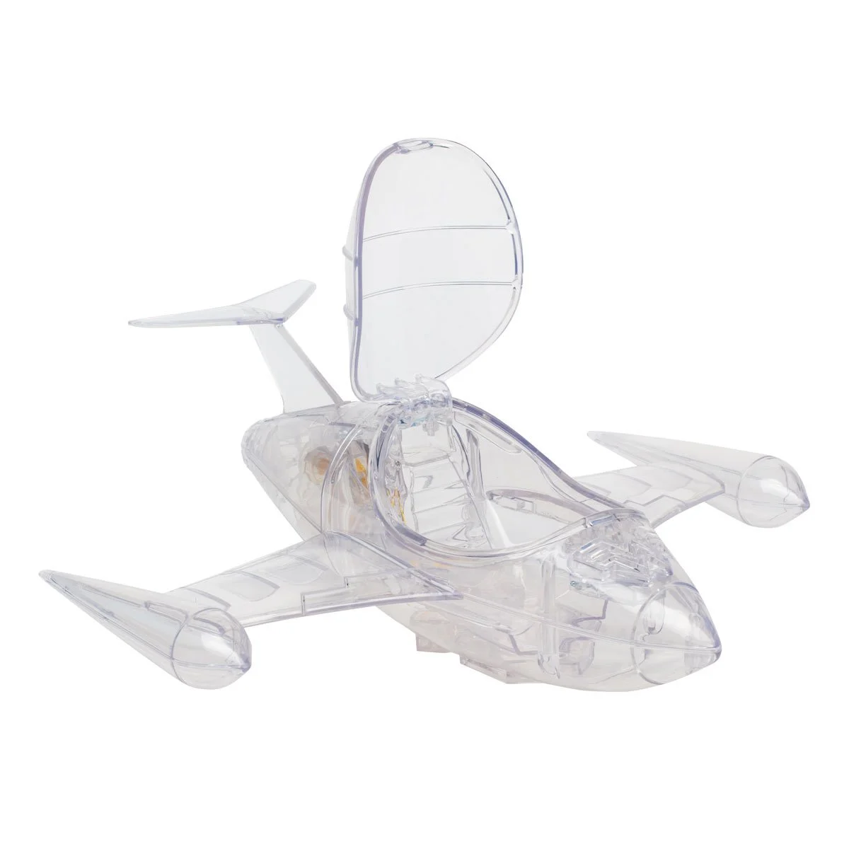 Compatible with new and old action figures from the DC Super Powers Line, the Invisible Jet features a translucent design and seats one figure (sold separately). It also includes a pop up canopy and lasso capture claw.