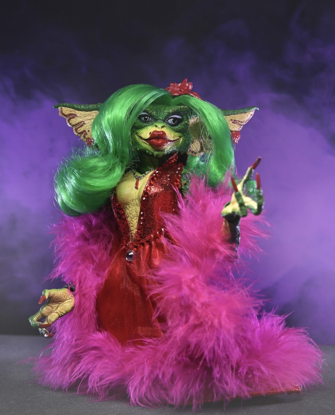 It’s the “Ultimate” showstopper for your Gremlins collection! Fan-favorite Greta Gremlin is back for an encore in a frighteningly beautiful showgirl ensemble. This Ultimate Showgirl Greta Gremlin action figure from Gremlins 2: The New Batch stands approximately 6″ tall in a gorgeous sequined gown. The figure features synthetic hair, fabric dress, interchangeable hands, and a feather boa. Comes in display-friendly, window box packaging with opening front flap.