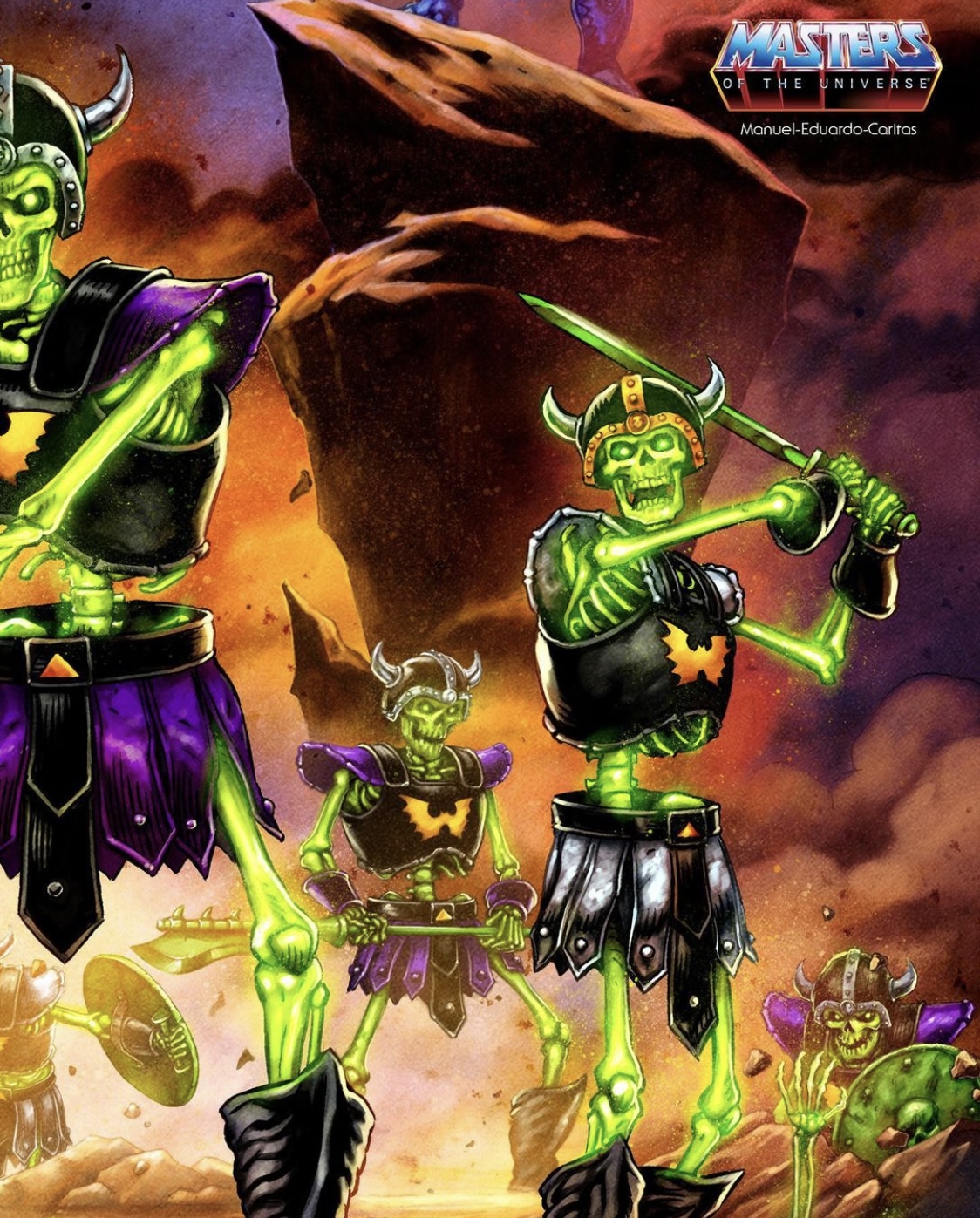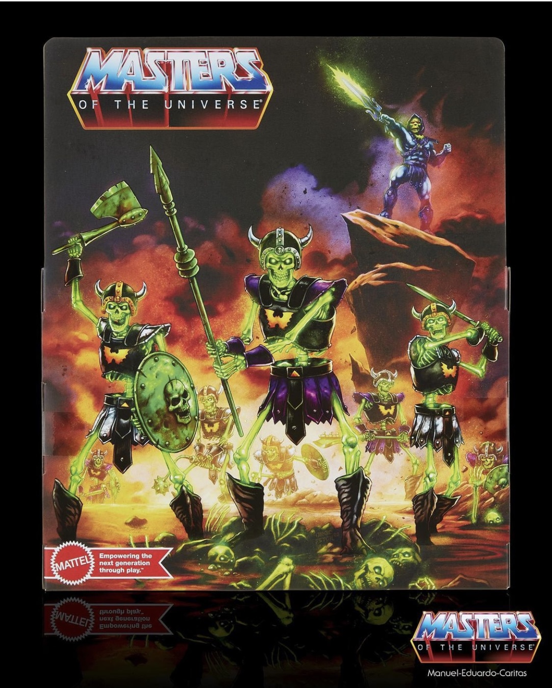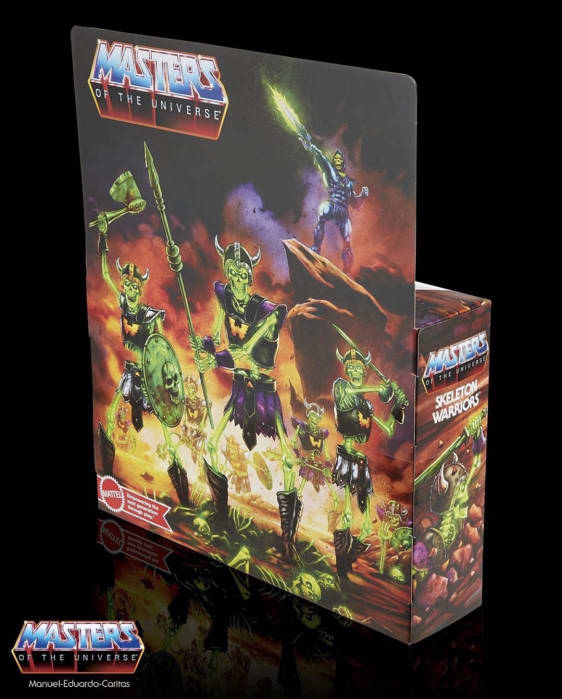 Mattel Package Designer Roy Juarez gave us a first look on his Instagram page at the art work and packaging that he and his team did for the deluxe glow in the dark Masters of the Universe Origins Skeleton Warriors Evil Army 2-Pack.