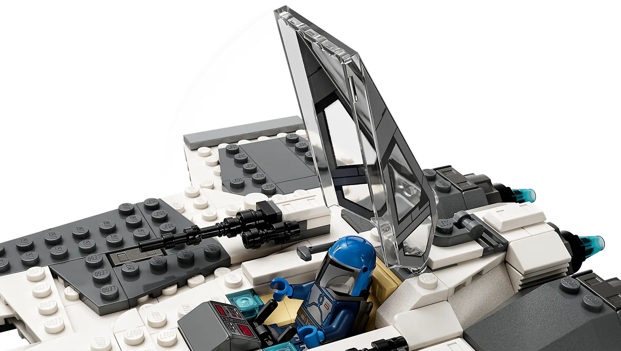 - The Mandalorian Fang Fighter has an opening cockpit for the mini-figures, a weapon storage compartment, and 2 spring-loaded shooters,