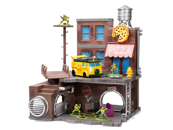 The Teenage Mutant Ninja Turtles Nano Scene from Jada Toys is now available for pre-order over on our affiliate Entertainment Earth. The set comes with all four turtles and will be released in July 2023. It features multiple levels, the TMNT party bus, pizza shop, adjustable bridge, and accessories. You can pick it up over on Entertainment Earth for $32.99.