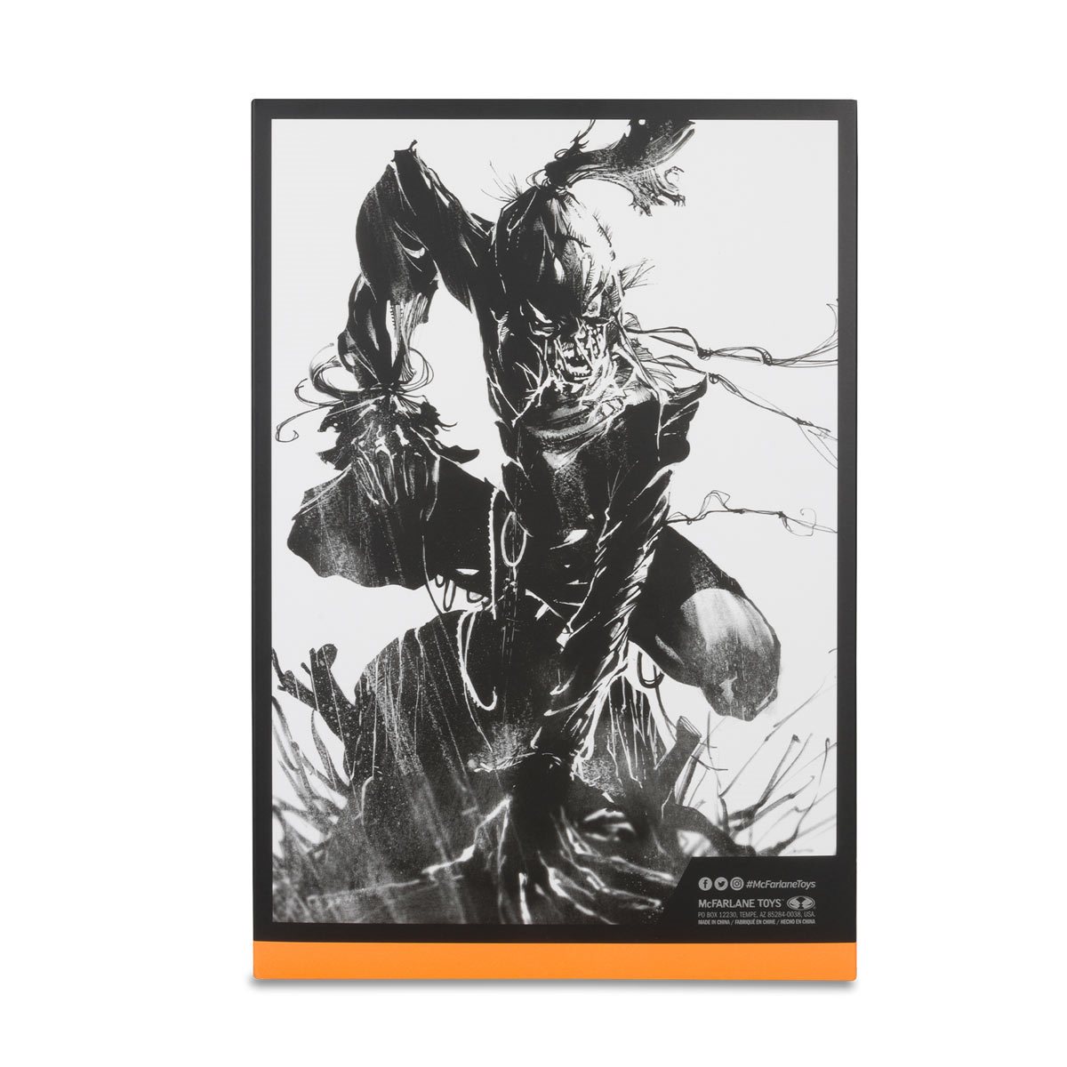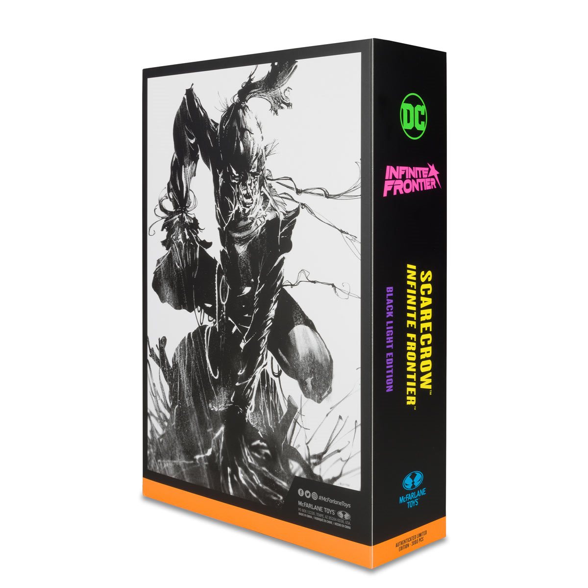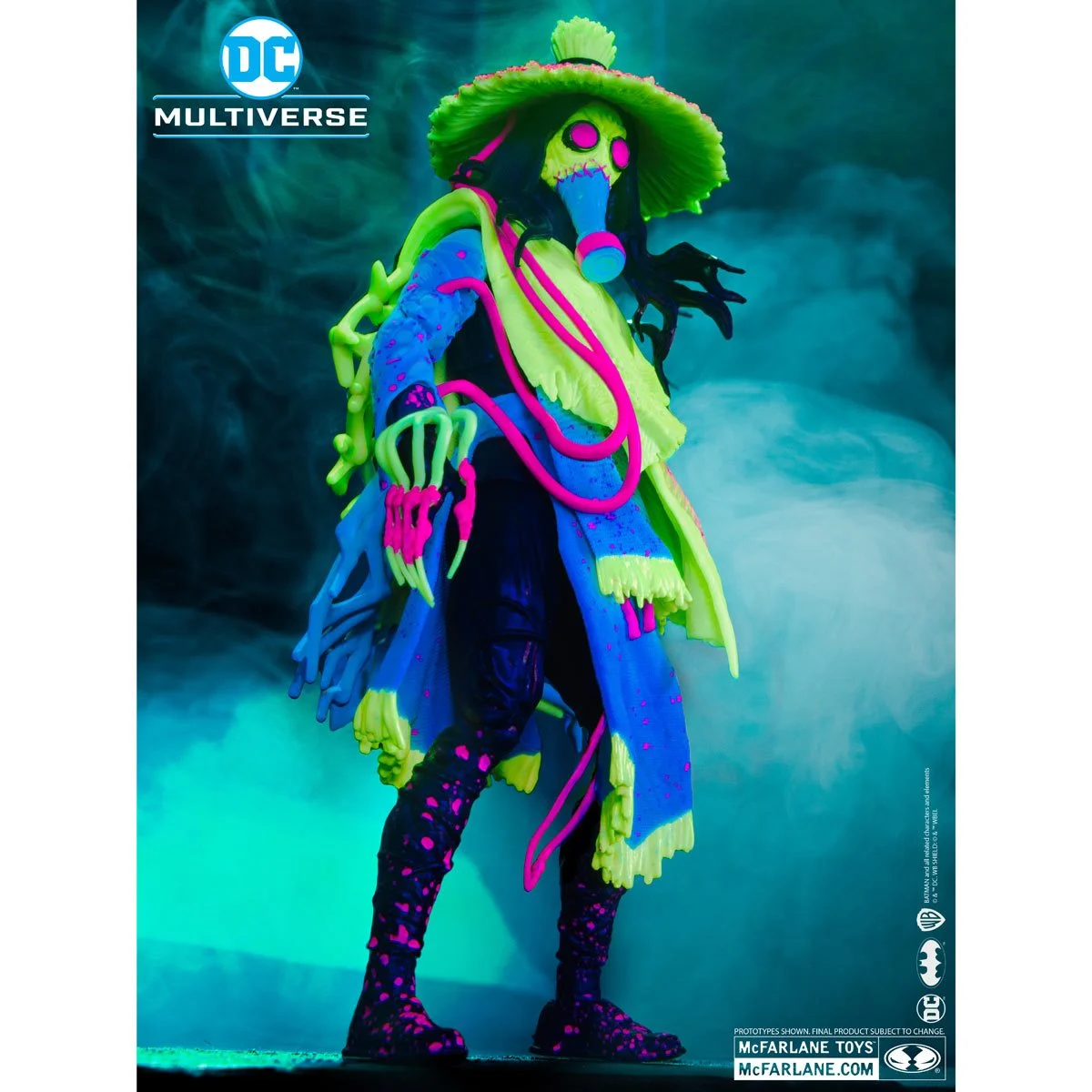 DC Multiverse Scarecrow Infinite Frontier Black Light Gold Label 7-Inch Action Figure – Entertainment Earth Exclusive: $29.99; July/August 2023; Inspired by DC Comics’ Infinite Frontier, this hauntingly hallucinogenic 7-inch figure is limited to 3,000 pieces. It features syringe claws, an exclusive card stand and a base with two battery-powered black lights. A collectible art card with a Scarecrow illustration on the front and a certificate of authenticity on the back is also included.