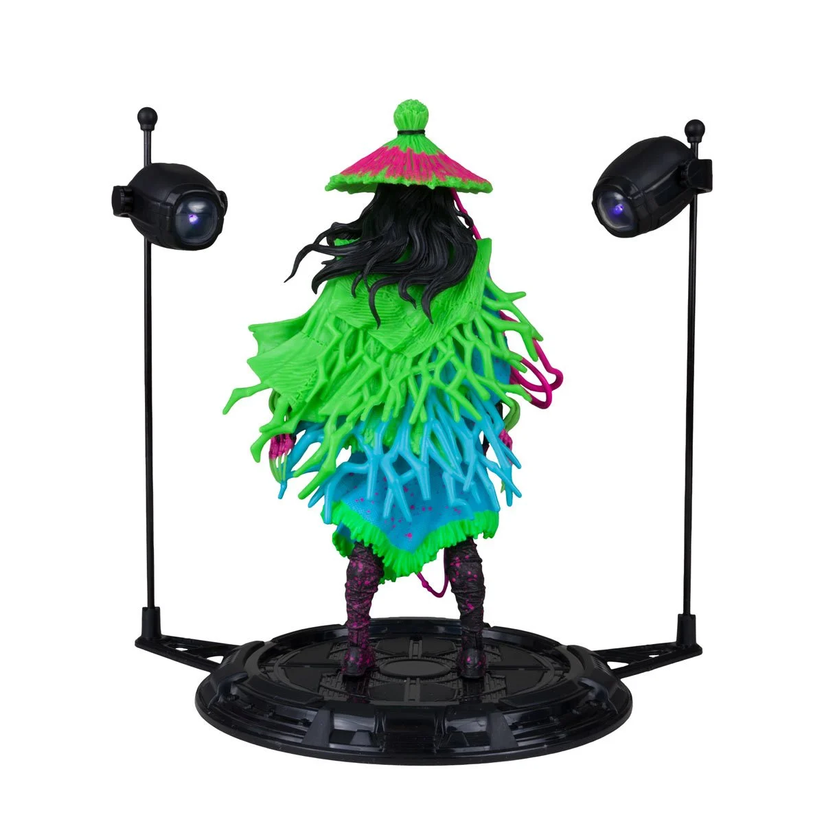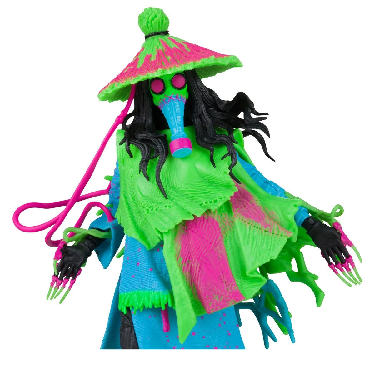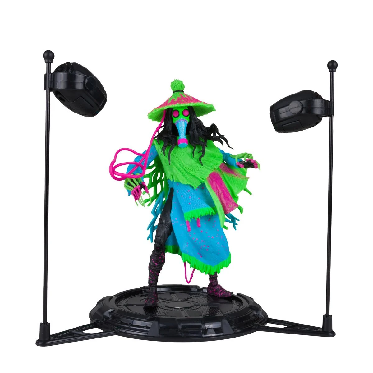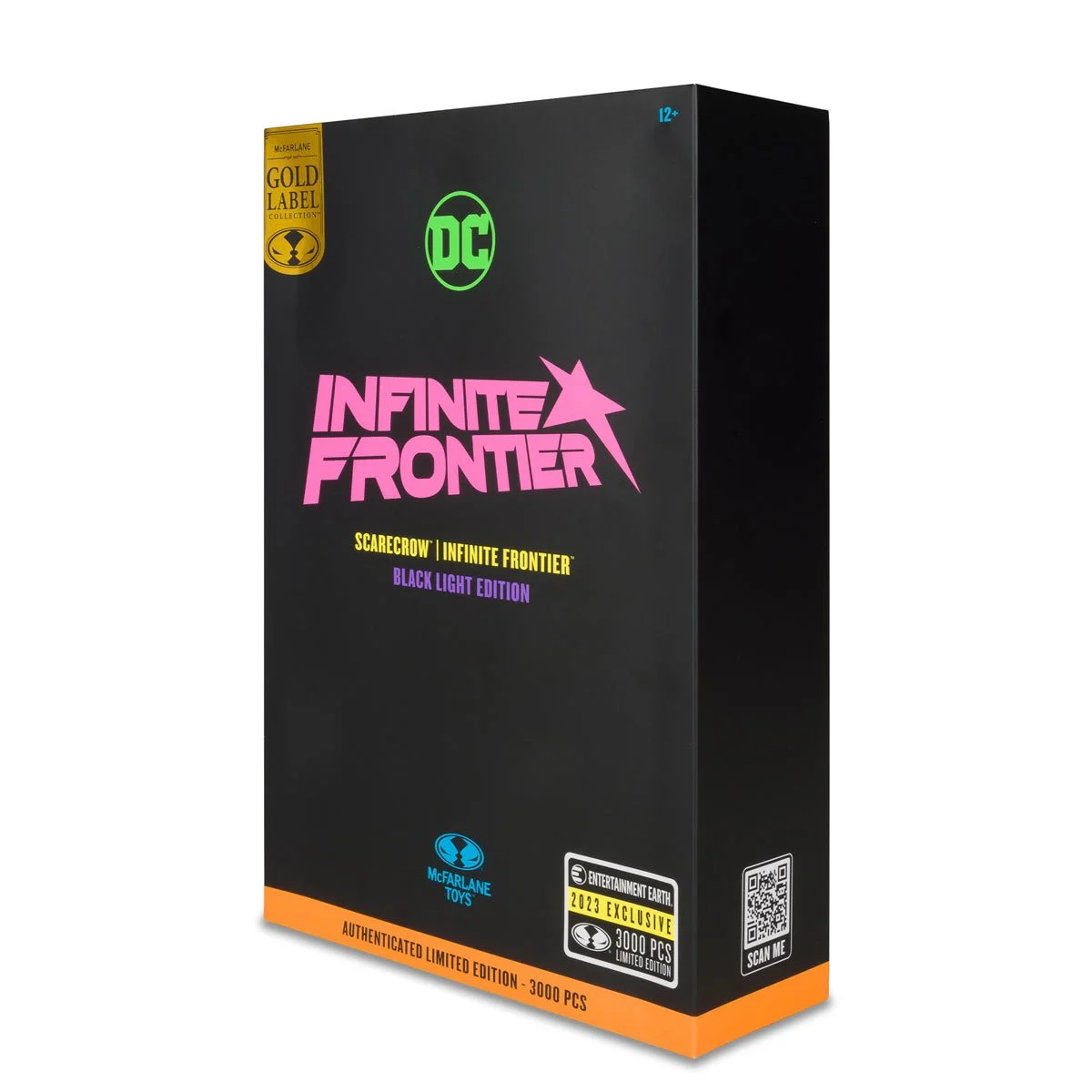 DC Multiverse Scarecrow Infinite Frontier Black Light Gold Label 7-Inch Action Figure – Entertainment Earth Exclusive: $29.99; July/August 2023; Inspired by DC Comics’ Infinite Frontier, this hauntingly hallucinogenic 7-inch figure is limited to 3,000 pieces. It features syringe claws, an exclusive card stand and a base with two battery-powered black lights. A collectible art card with a Scarecrow illustration on the front and a certificate of authenticity on the back is also included.