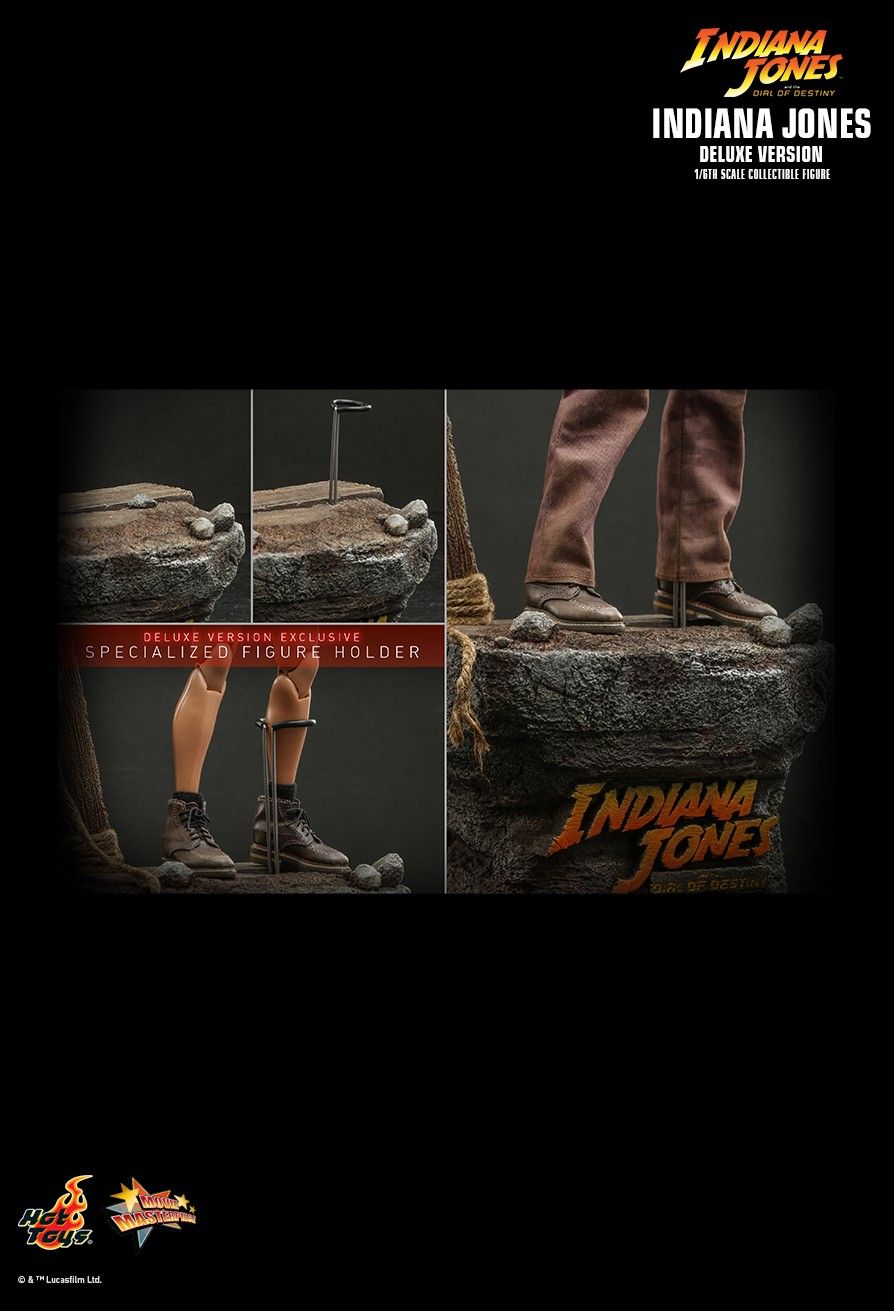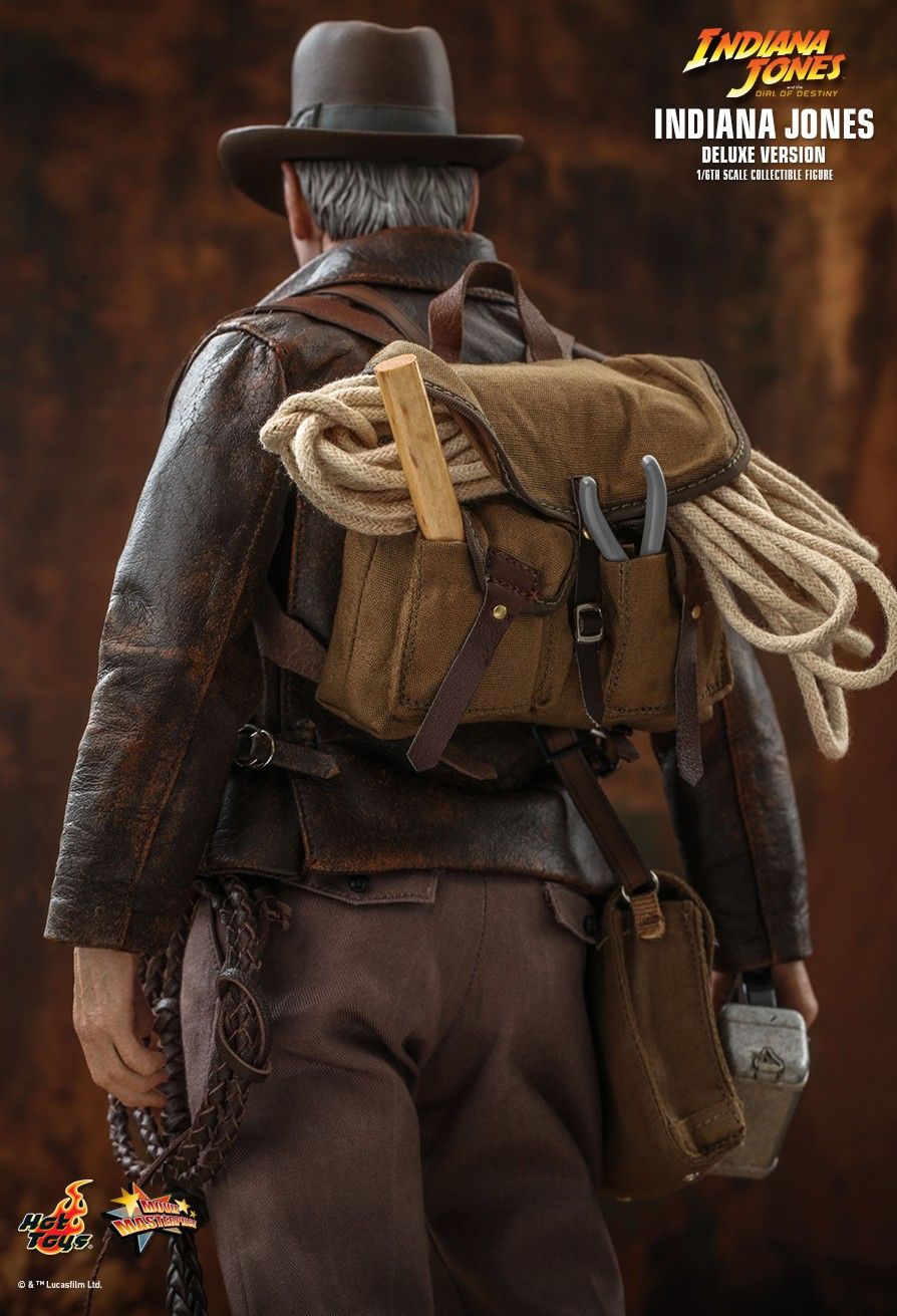 The highly-accurate collectible figure features a newly developed head sculpt with separate rolling eyeballs system and detailed fedora hat, skillfully tailored outfit highlighted by the genuine leather jacket and shoes, also Indiana Jones’ iconic whip in genuine leather for added texture, a variety of accessories including a LED light up torch, backpack, crossbody bag, climbing robe, more tools and a theme figure base.