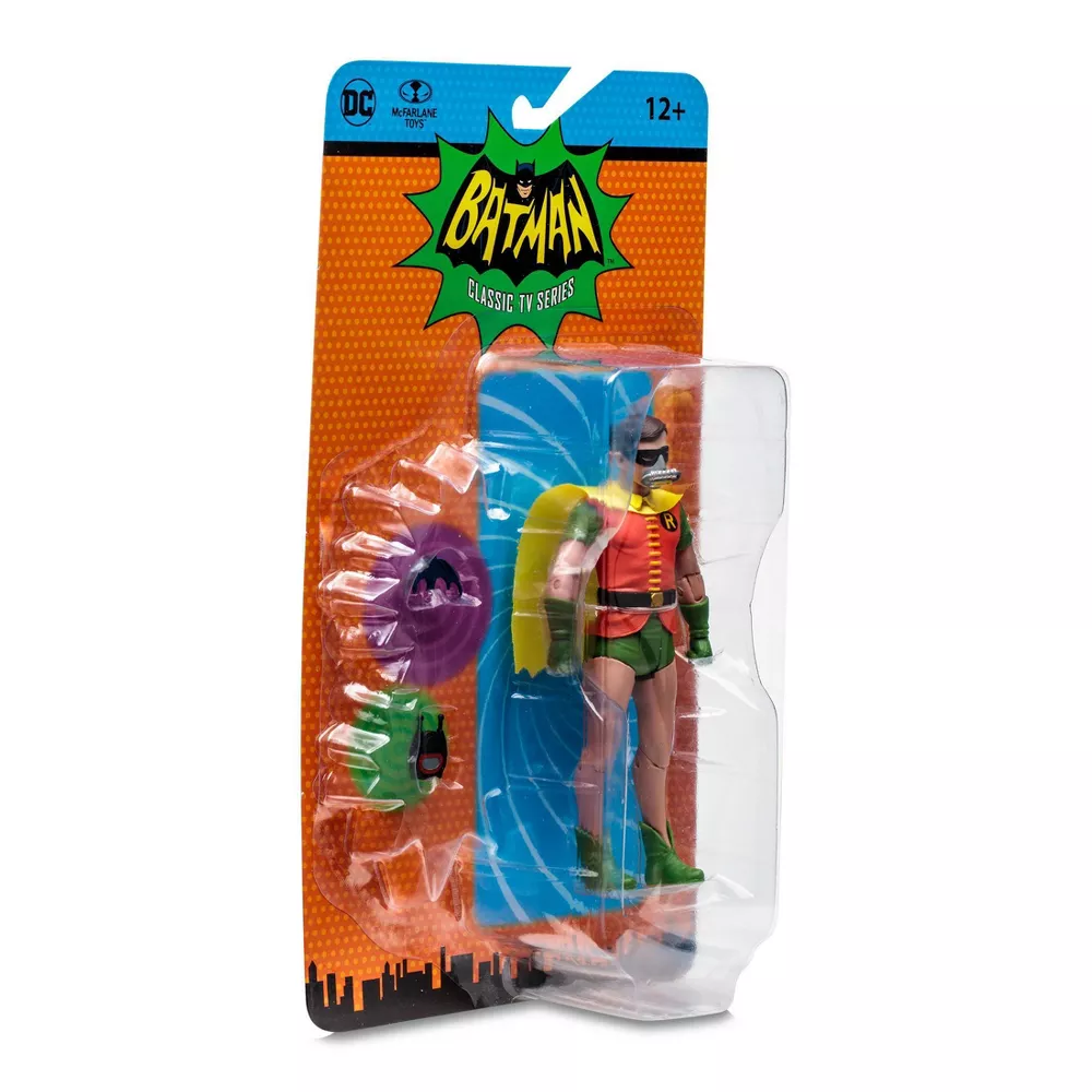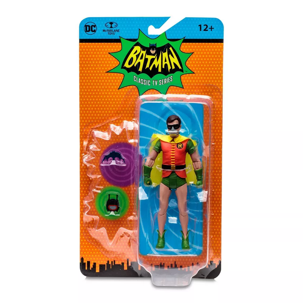 McFarlane Toys DC Retro 66 Robin with Oxygen Mask 6″ Figure $19.99; Jul 30, 2023. Based on the 1966 Batman comics, this 6-inch articulated figure is wearing an oxygen mask and includes a Batarang and Batradio. It is packaged in a card-backed blister with the iconic look of the 1966’s series.