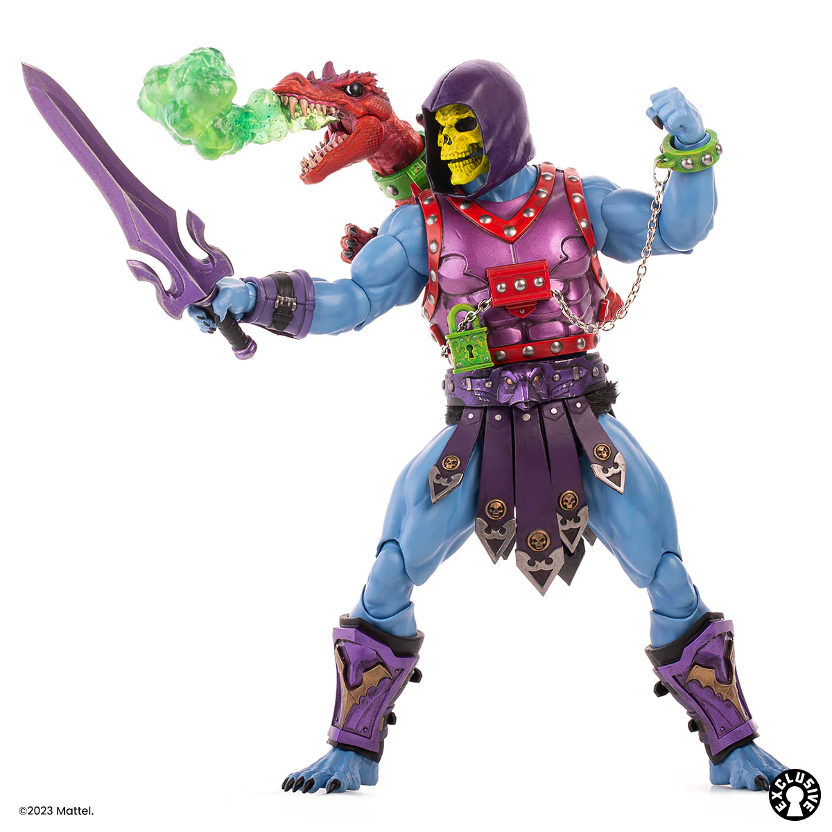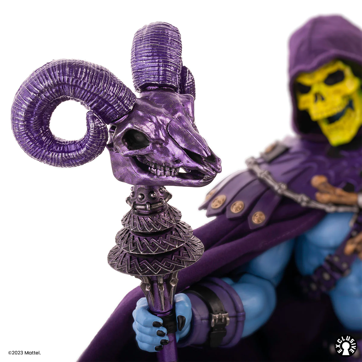 Our Skeletor Deluxe 1/6 Scale Figure is the definitive version, featuring some of our favorite accessories from the original MOTU minicomics and 80s Mattel releases. Everything about this figure is completely brand new, with improved functionality from top to bottom … including new and improved waist articulation for a much wider range of motion!