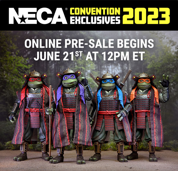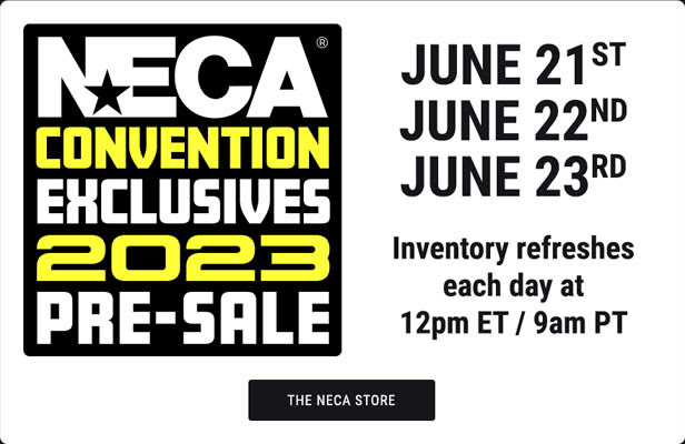 NECA‘s San Diego Comic Con Exclusives will go up for June 21 – June 23 at 12:00 p.m. ET daily on NECA Store. Inventory will refresh every day. A limited quantity of 2023 Convention Exclusives will be available at the NECA booth (#3545) on a first come, first serve basis.