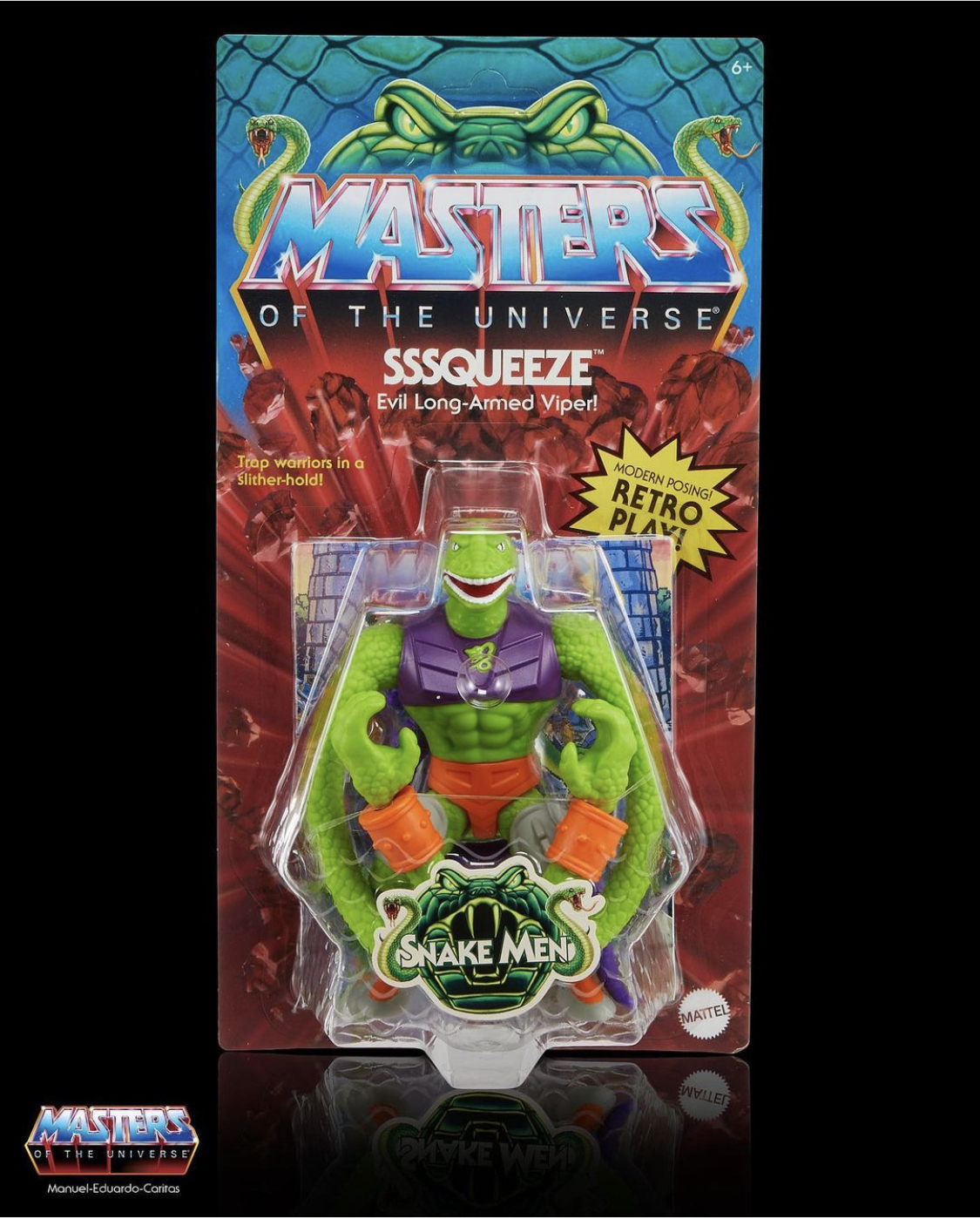 Over on Instagram, Mattel Package Designer Roy Juarez gave us a first look at the art work and packaging that he and his team did for Masters of the Universe Origins Sssqueeze, the evil long-armed viper. Check them out below and let us know what you think about them in the comments!