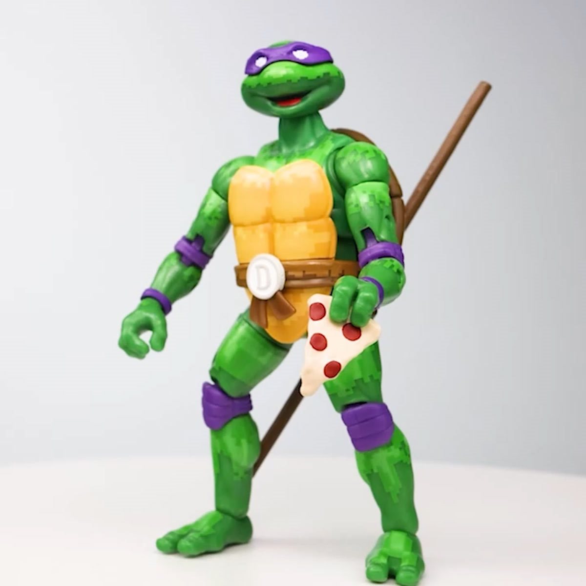 Donatello: 2 extra sets of hands, 1 alternate head, 1 pizza slice, and his bo staff
