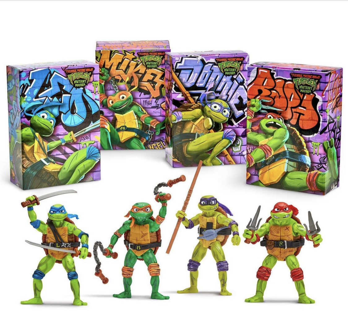 Playmates Toys revealed a San Diego Comic Con 2023 Exclusive Teenage Mutant Ninja Turtles: Mutant Mayhem Figures. The figures are Donatello, Leonardo, Raphael and Michelangelo and will be 4.5-inches tall. They’ll feature detailed shading and an incredible graffiti box art packaging.