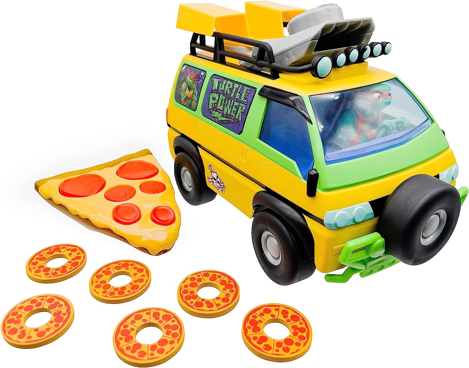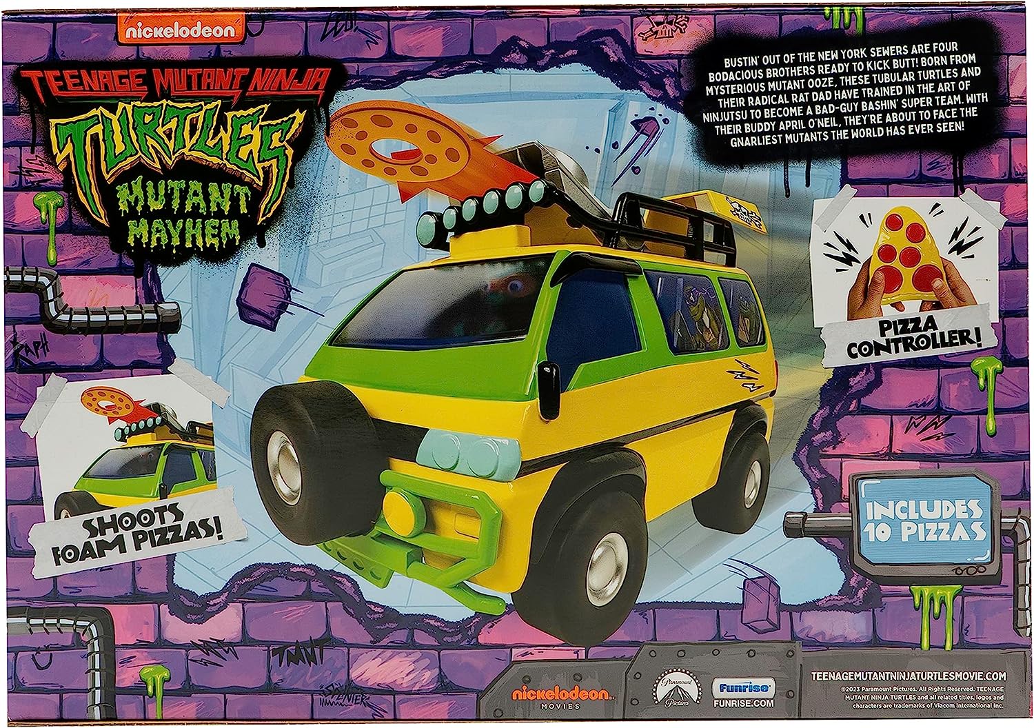 The Teenage Mutant Ninja Turtles Pizza Blaster RC is a full-function 2.4 GHz remote-controlled vehicle designed with movie-inspired style and a pizza launching feature. With the simple press of a remote-control button, you can launch 6 foam pizzas and pizza-blast your opponents! Includes 10 foam pizzas for launching. The pizza slice shaped controller makes driving around fun and easy.