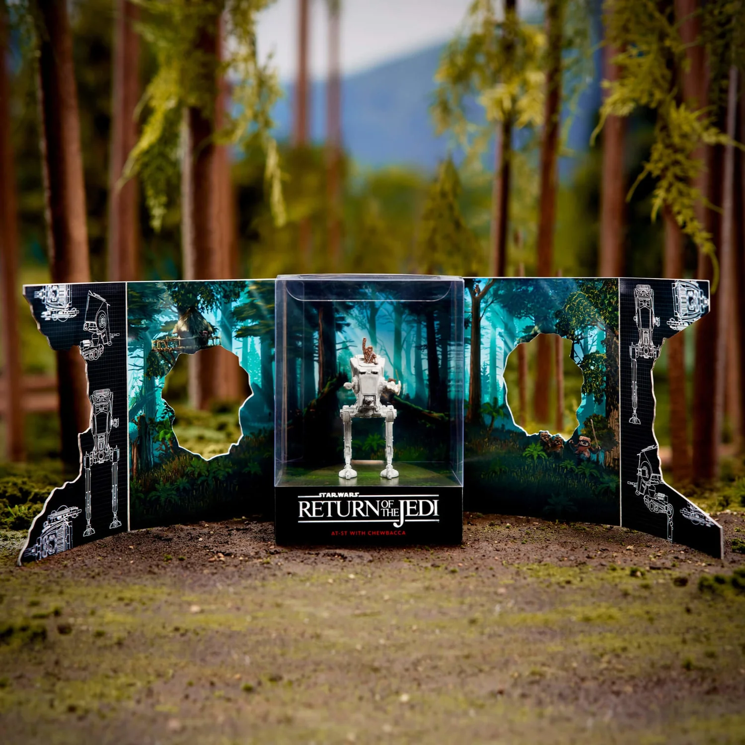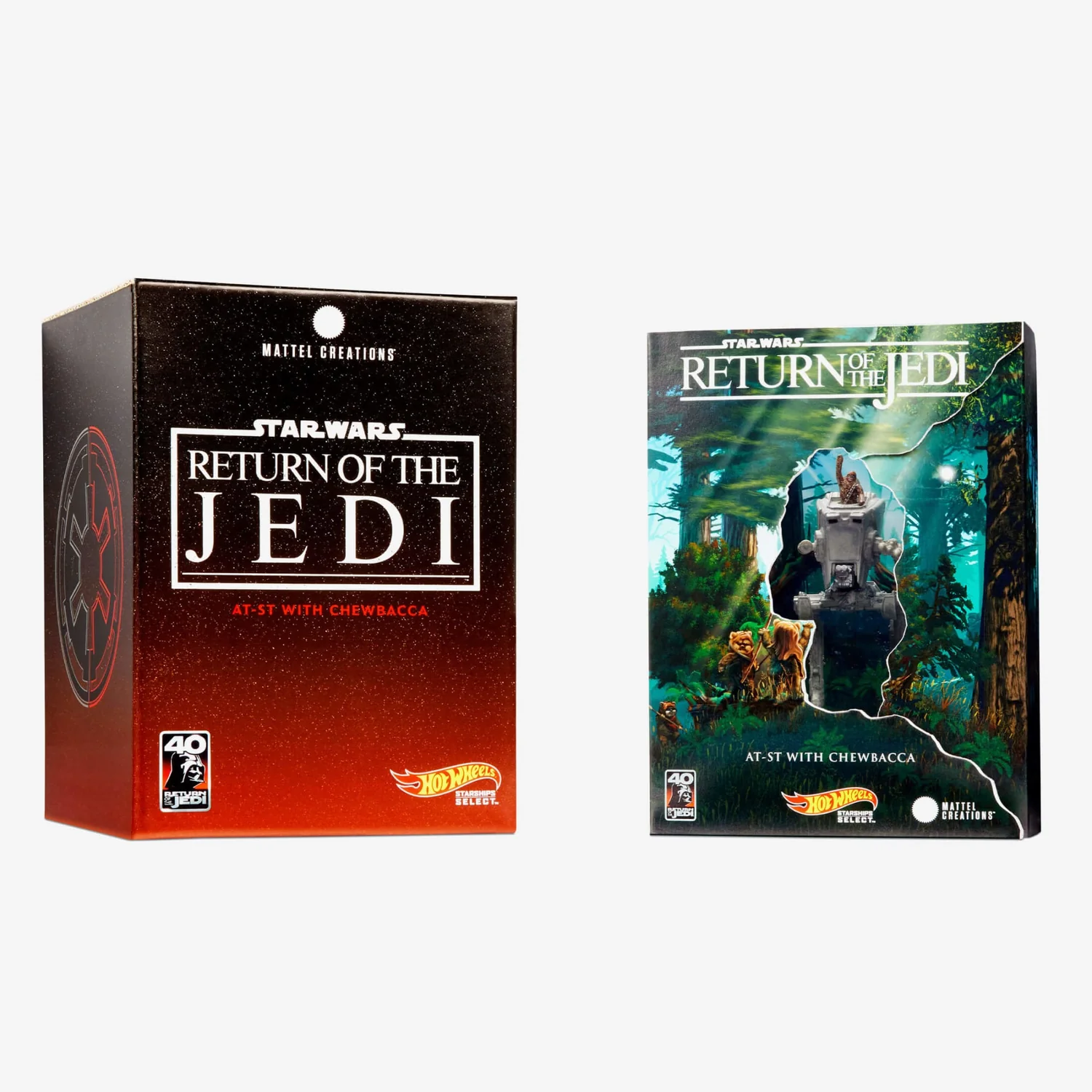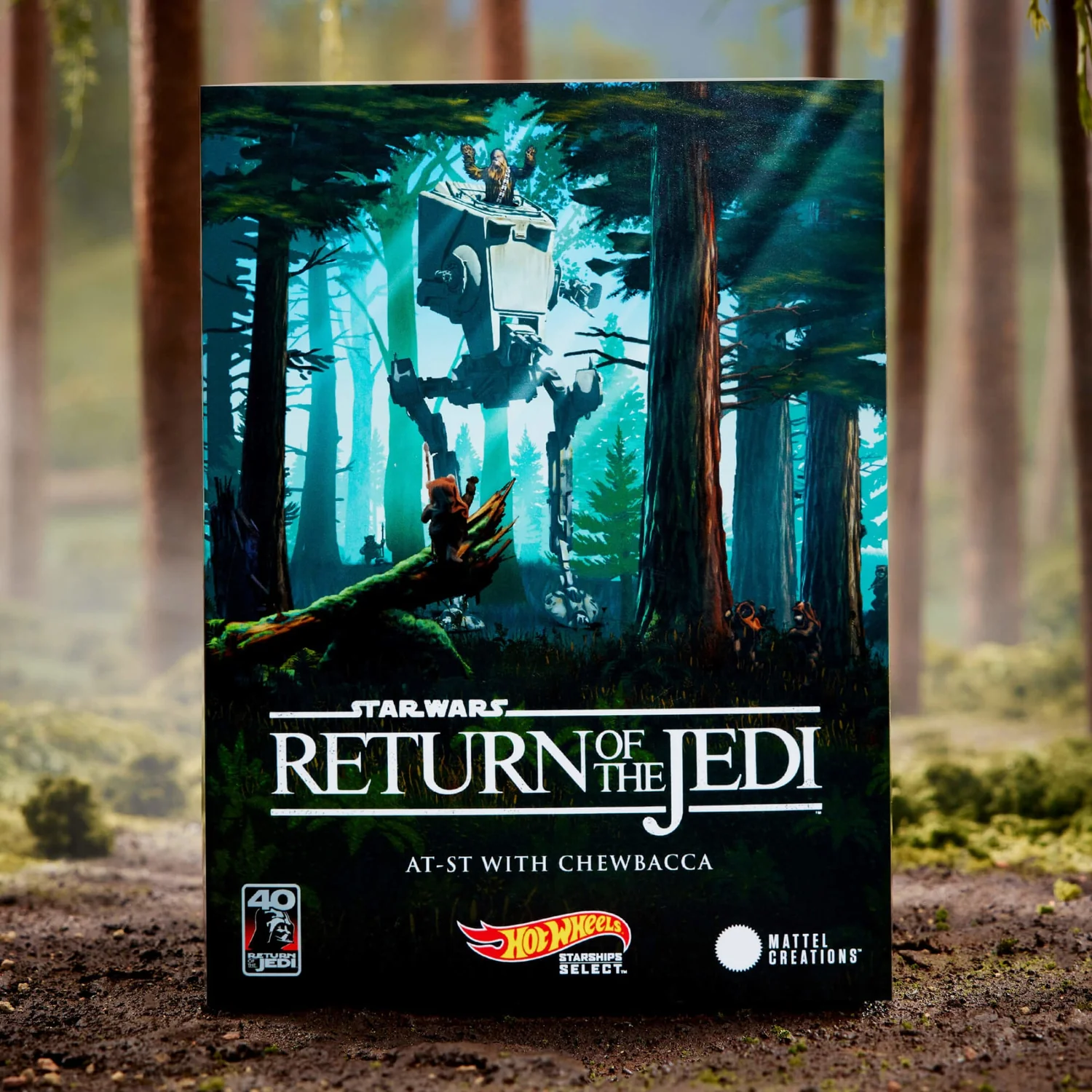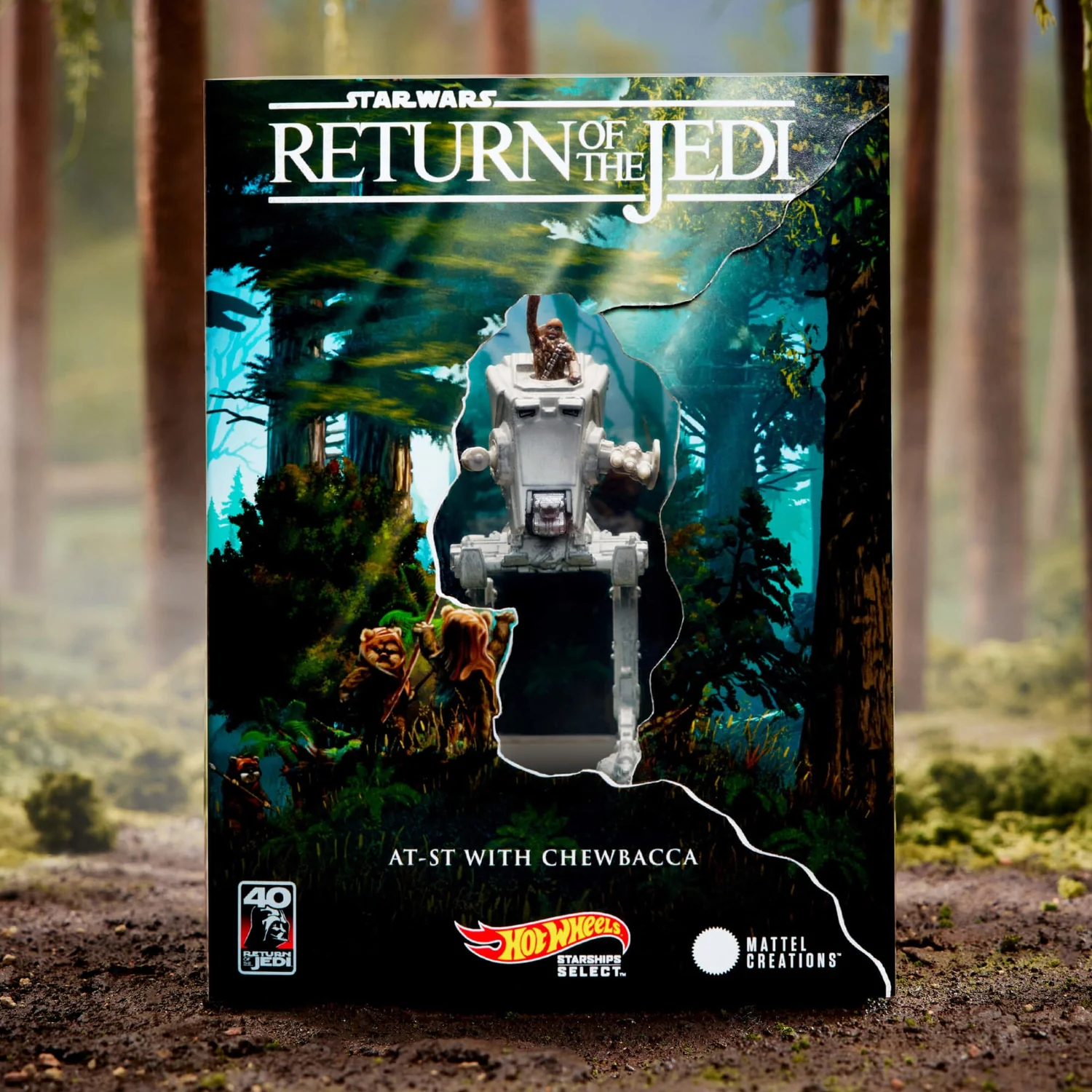 Hot Wheels Star Wars Starships Select AT-ST With Chewbacca $30; The first-ever Starships Select AT-ST is a die-cast vehicle depicting the scene in The Return of the Jedi when Chewbacca and the Ewoks save Han and Leia during the Battle of Endor.