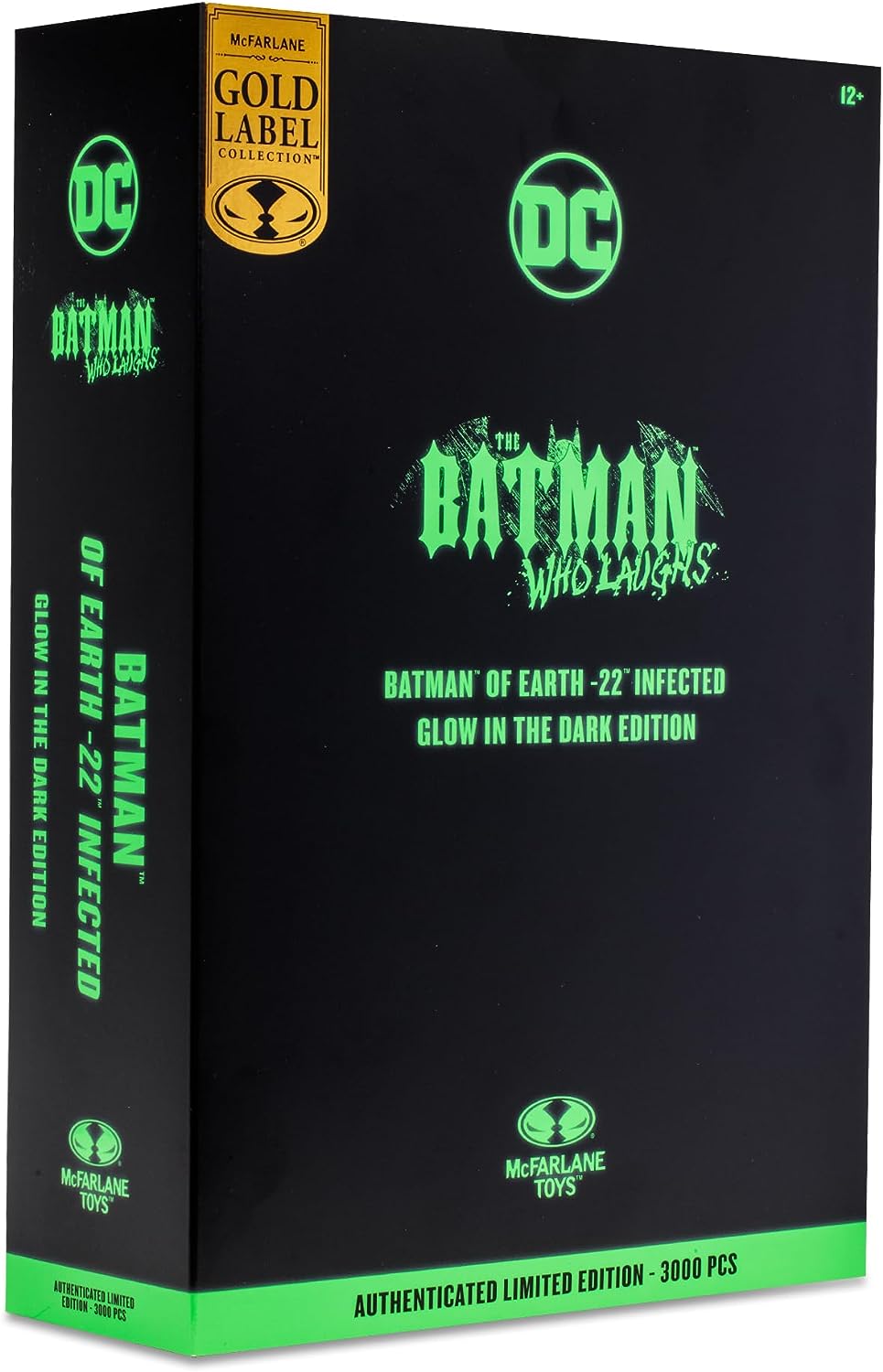 Batman of Earth -22 Infected Glow in the Dark Edition DC Multiverse Gold Label from McFarlane Toys is now available for pre-order as an Amazon Exclusive. This 7-inch scale figure comes with a batarang, collectible art card, DC card stand and base. This figure retails for $29.99 and will be released on September 15, 2023. It has 22 points of articulation.