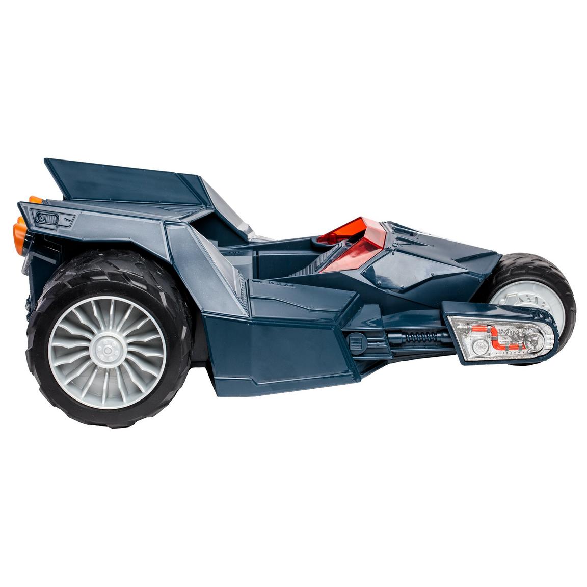 The Bat-Raptor is a state-of-the-art, three-wheeled, open-air roadster built by the Dark Knight himself. Powered by a mighty engine, this trike is able to make massive leaps, scale brutal terrain, and chase down the most evasive criminals.