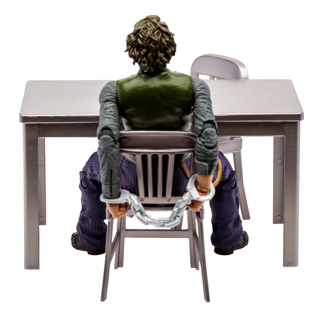 The new DC Multiverse The Joker Interrogation Room (The Dark Knight) Gold Label 7-inch Figure from McFarlane Toys is now available for pre-order exclusively on McFarlaneToysStore.com for $39.99. It is estimated to ship in October 2023. This set recreates the famous scene of Heath Ledger as the Joker when he’s being interrogated by Commissioner Gordon and then by Batman.