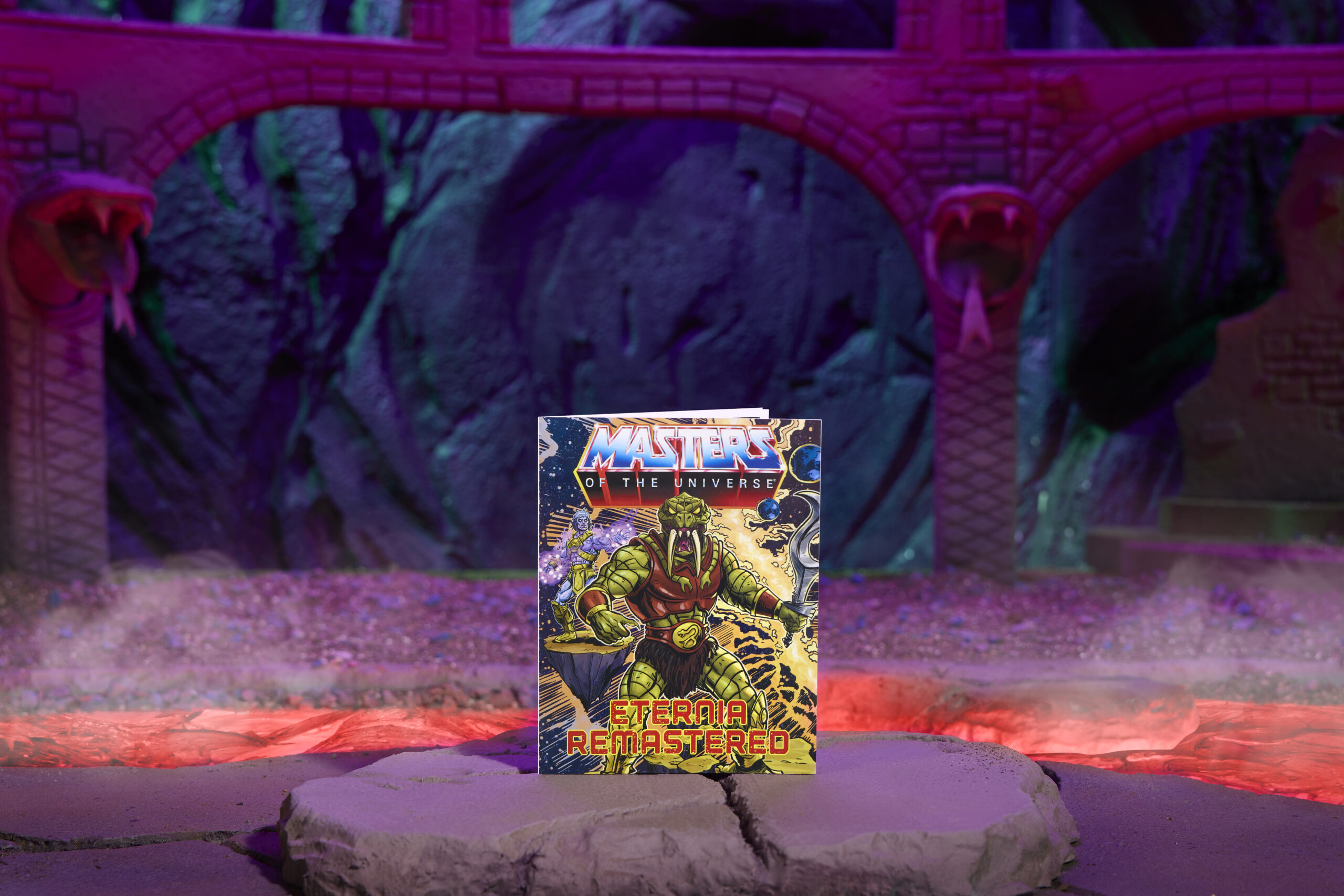 Fang–Or will come inside our collector–friendly packaging. The blister bubble is easily removable it can slide off and on, and he will also come with an exclusive mini comic. The artwork teases potential upcoming figure reveals and a very cool easter–egg I had to include in the cardback artwork. Fans will notice that the Snake Lair is surrounded by a moat and a creature. The moat pays homage to The Castle Moat playmat that Mark Taylor originally envisioned, and the sea creature is one of the creatures illustrated in The Castle Moat.
