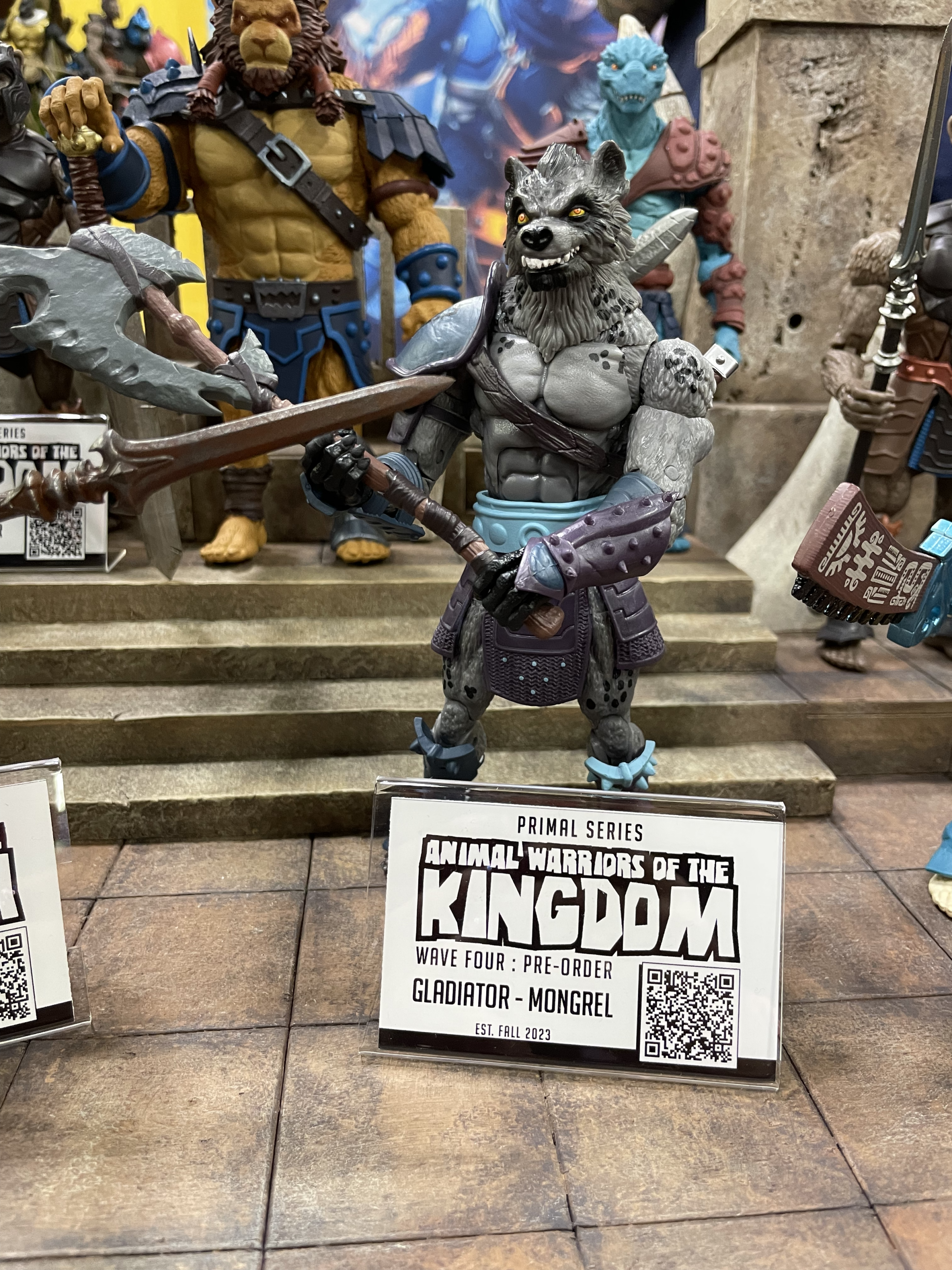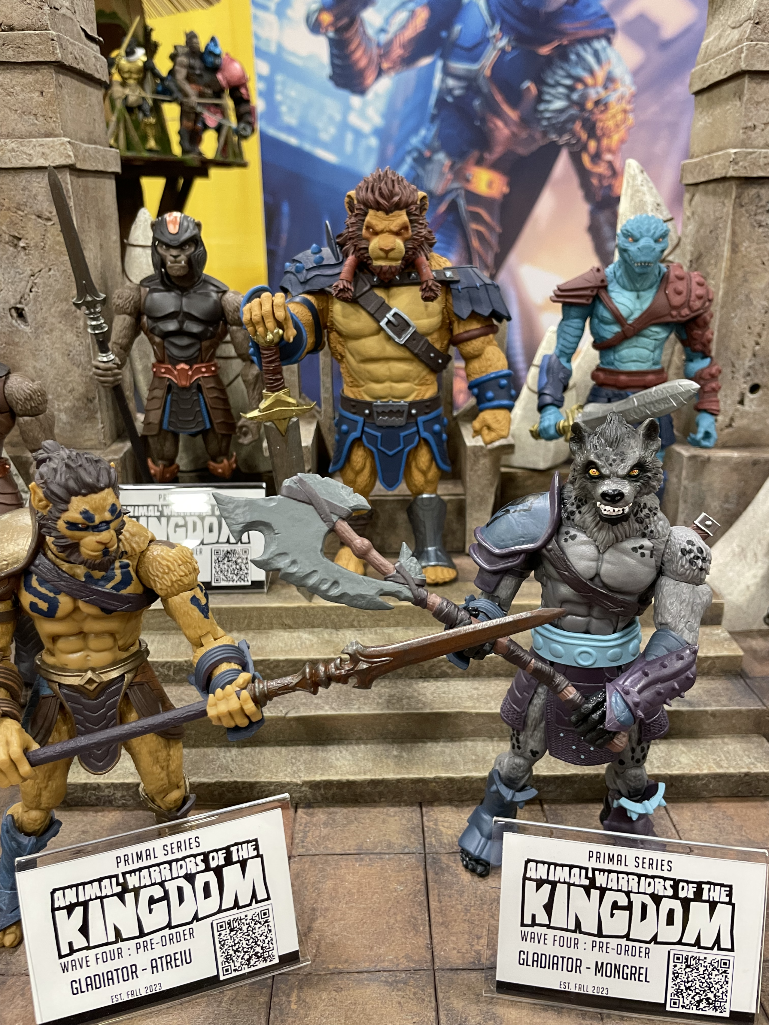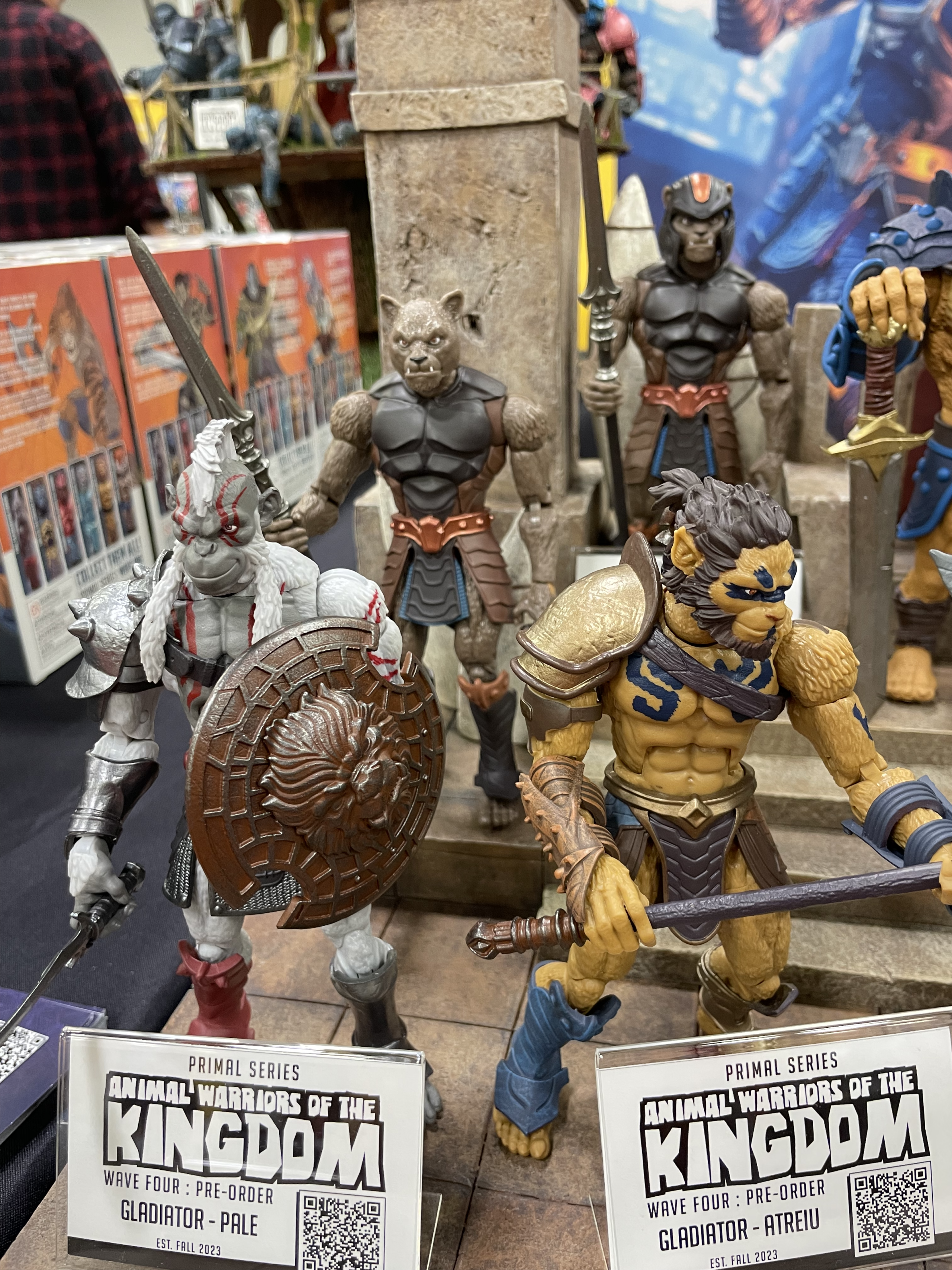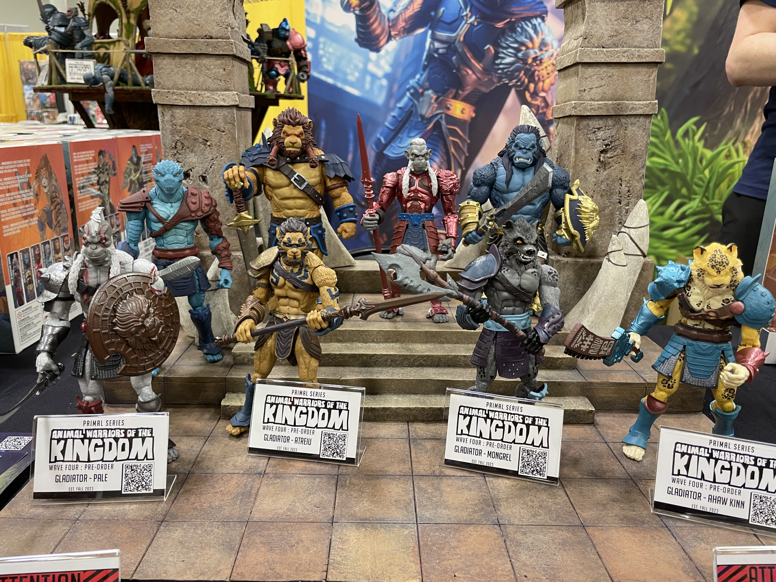 GDL is at Power-Con 2023 this weekend and one of our stops today was at Spero Toys’ Animal Warriors of the Kingdom booth, where they had figures from Waves 1, 2, 3, 4, and 6 as well as their Power-Con Exclusive Tanger figure on display and available for pre-order. (You can try scanning the QR codes on your screen to see if they work.) They were awesome-looking in person, and everyone at the booth was super cool to talk to.