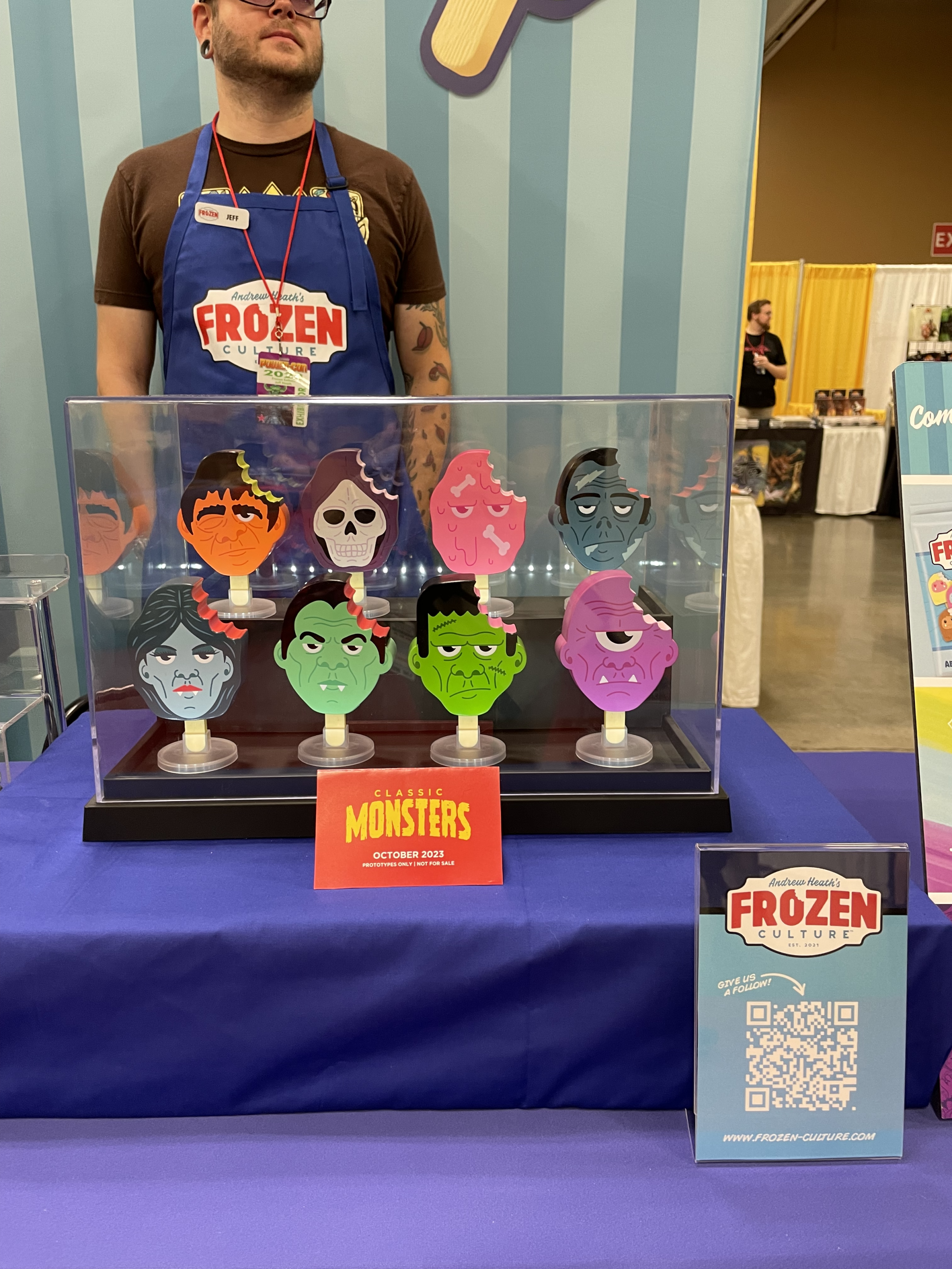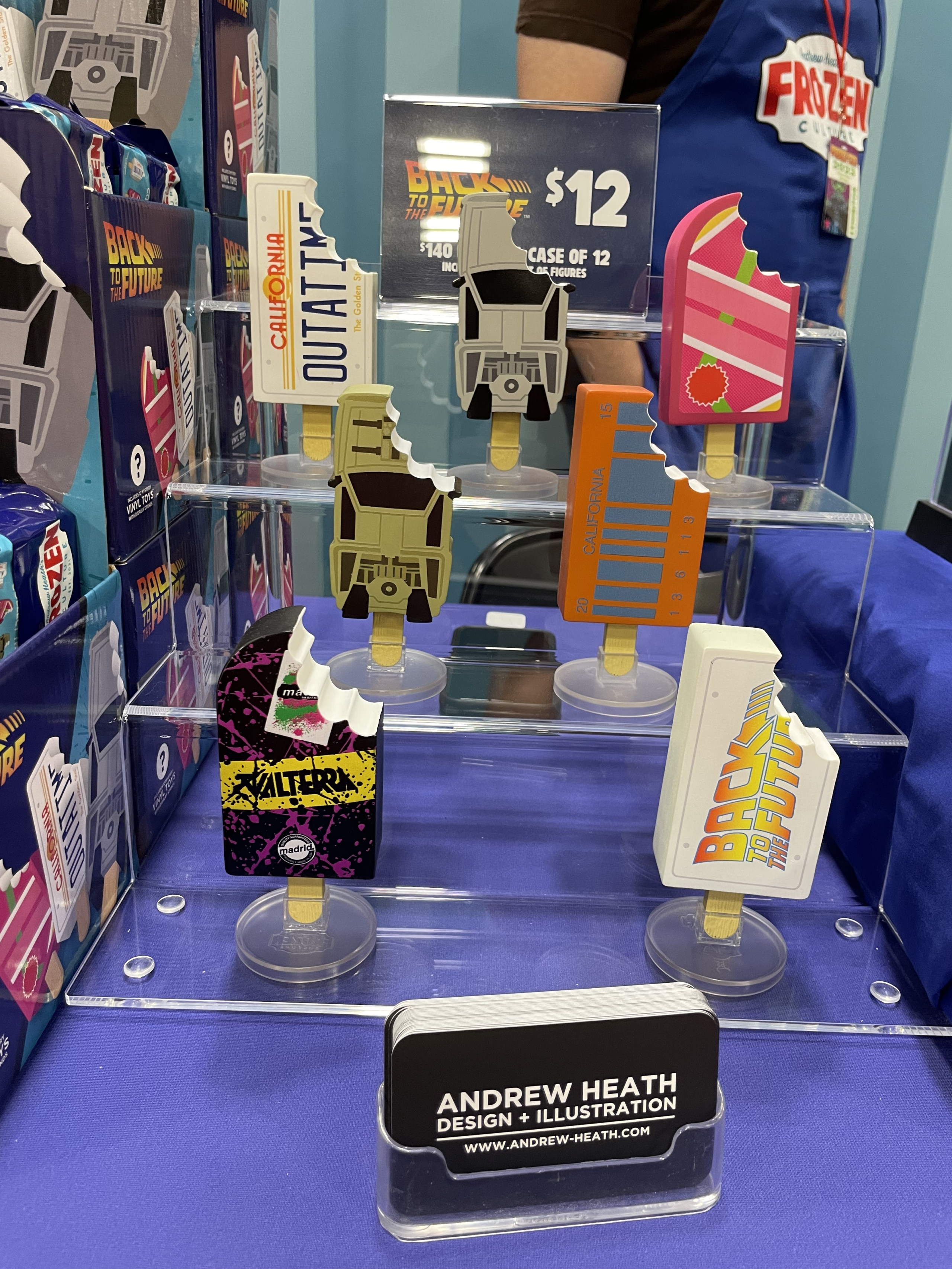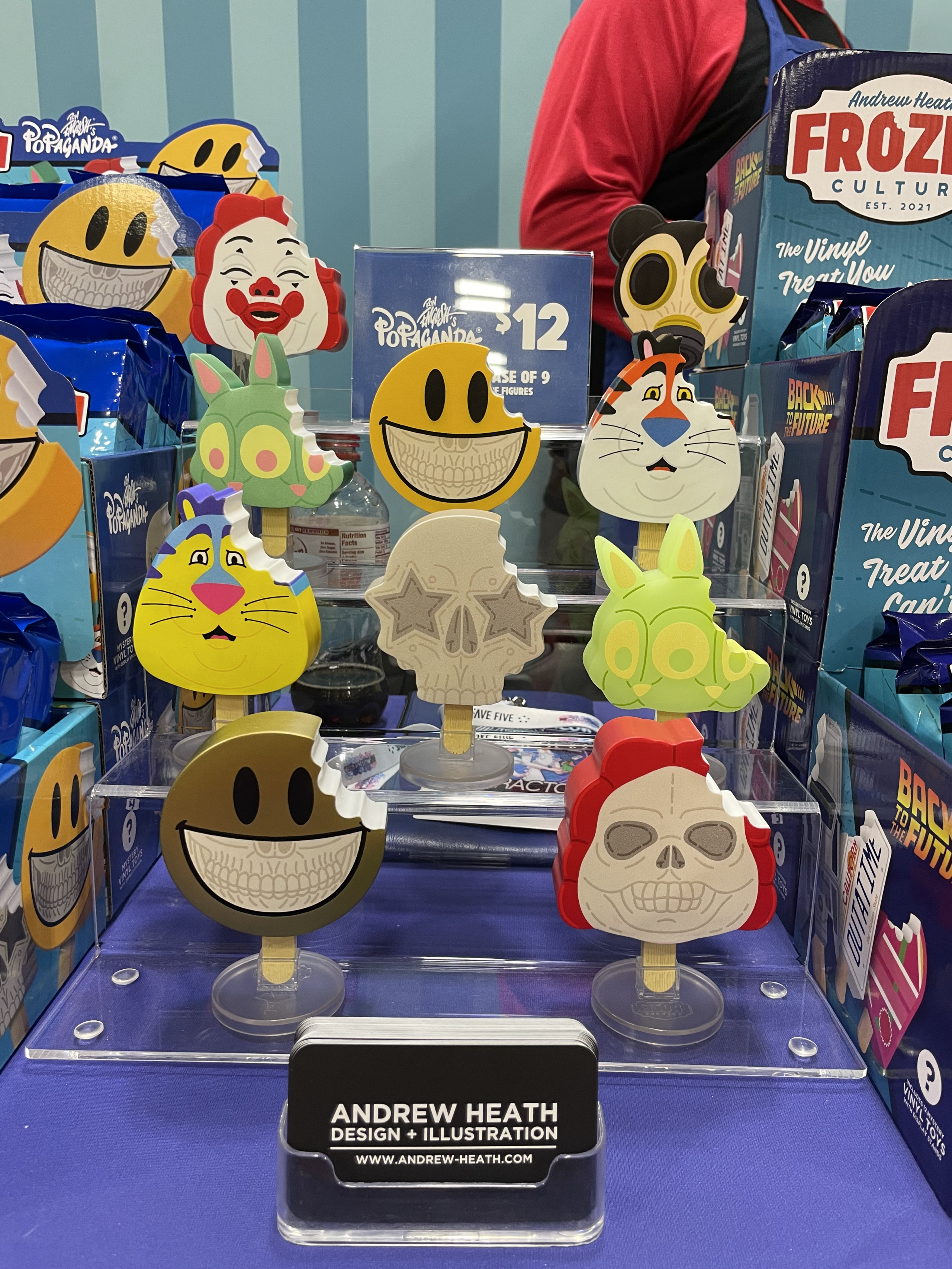 While we were at Power-Con 2023, we wanted to check out as many booths as we could. One of those booths was Andrew Heath’s Frozen Culture. Frozen Culture sells retro pop-culture designs in the form of vinyl popsicle sticks. They were cute and clever and reminded us of early Funko Pop! figures.