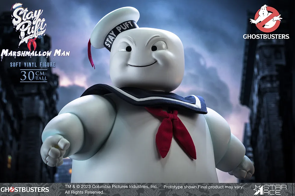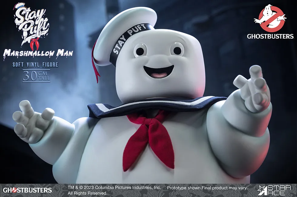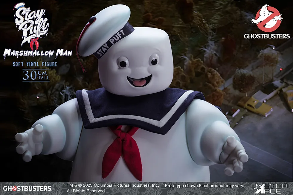 Star Ace has revealed their new Soft Vinyl Ghostbusters Stay-Puft Marshmallow Man. This figure stands at approximately 12-inches tall (30cm). There are two different versions available: a standard version, which costs $153.99 and includes Stay Puft’s happy face and open hands and a deluxe version for $168.99, which comes with an alternate “angry” head and alternate fists. The head, arms, and legs on both editions rotate, letting you pose him.