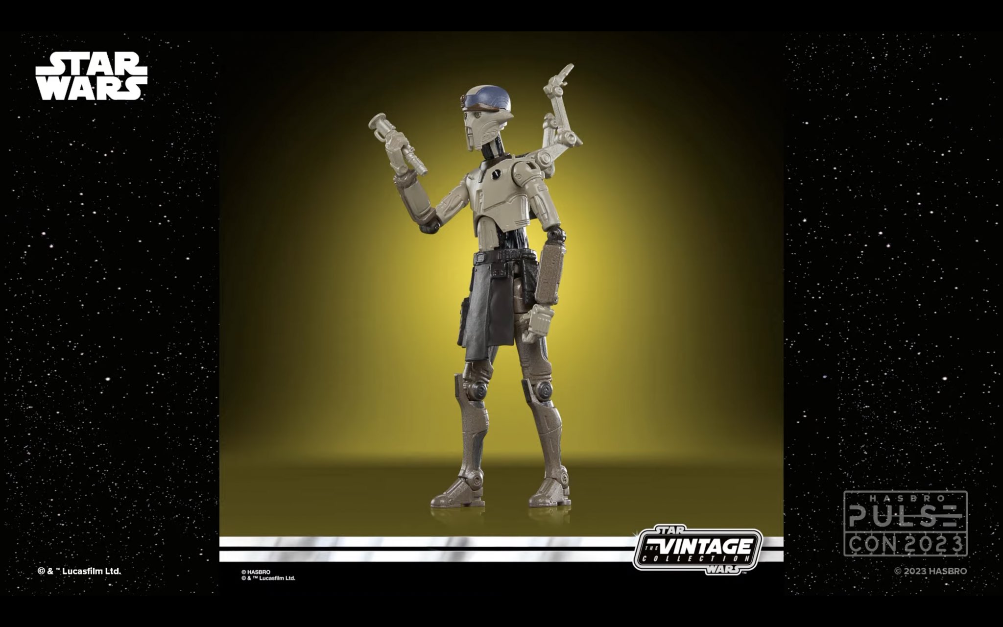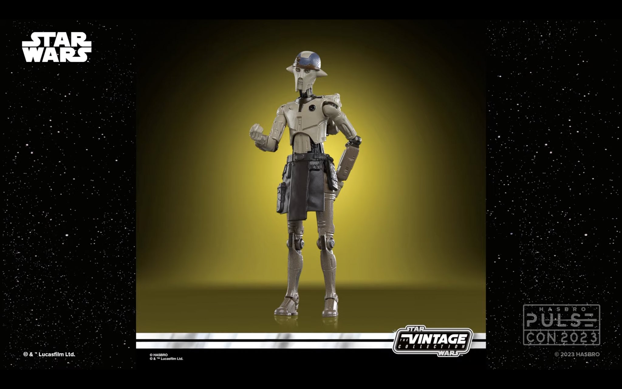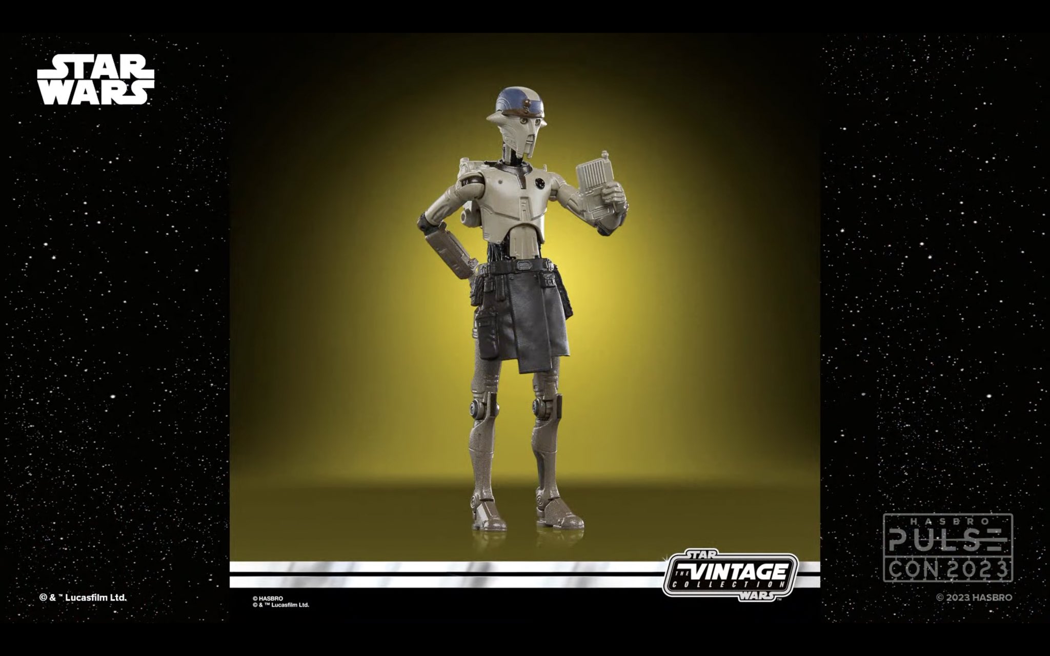 Star Wars: The Vintage Collection 3.75-inch Huyang: No product available for show at this time, just photography. Fully posable; Fully newly tooled with new details like wiring across stomach. Comes in metallic colors. Arms can be interchanged into different poses. Comes with data pad and tool accessory. Pre-orders will be announced at a later time. Will be out in Summer 2024. [Amazon, Entertainment Earth, GameStop]