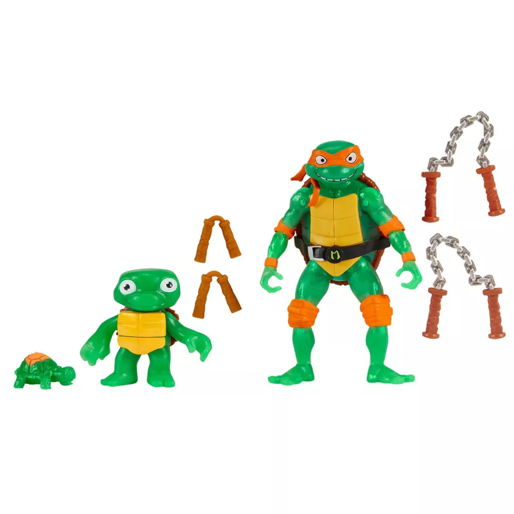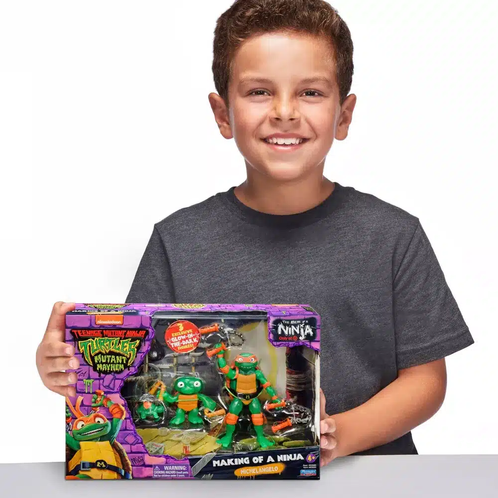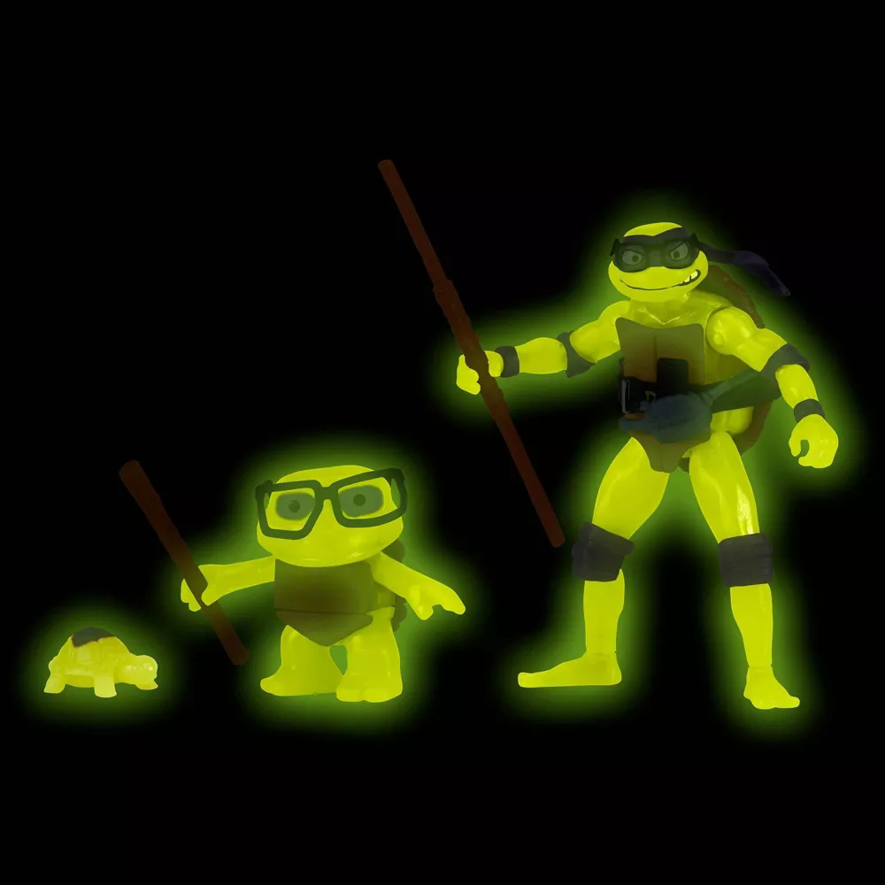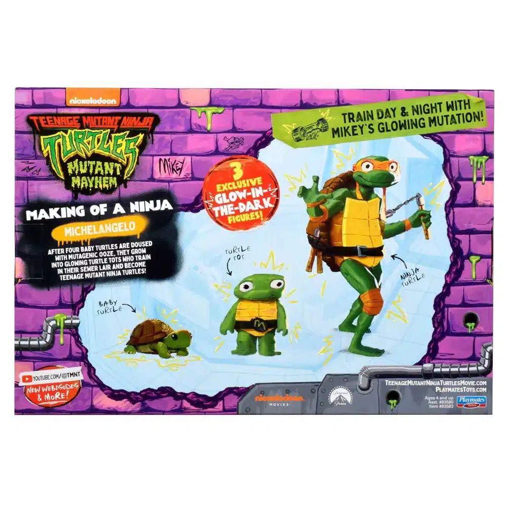 The Teenage Mutant Ninja Turtles: Mutant Mayhem Making of a Ninja Michelangelo and Donatello from Playmates Toys are now available as a Target Exclusive. Each set is $14.99 and comes with a baby, child, and teenage-size of the turtle. They also glow in the dark! Check out pictures and individual links below.